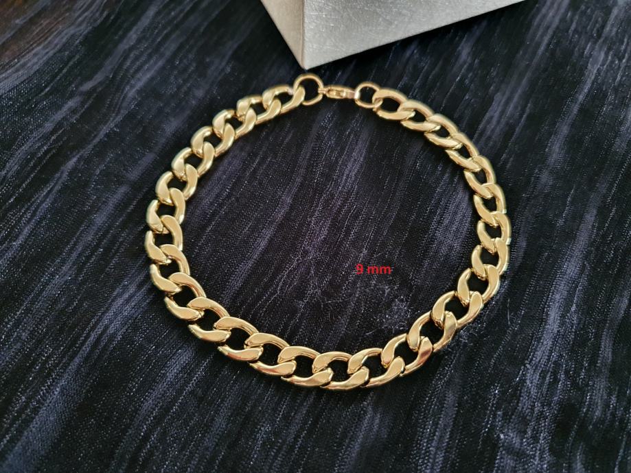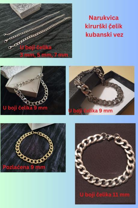 Narukvica kirurški čelik kubanski vez 3 mm, 5 mm, 7 mm, 9 mm i 11 mm, u boji čelika i pozlaćena