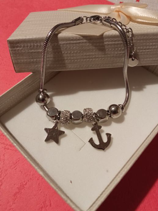 Narukvica je personalizirana što znači da birate privjeske na njoj (slovo, djetelina, srce, zvijezda, djevojčica, drvo života, anđeo, čudotvorna medaljica Majka Božja, križić, anđeosko krilo, sidro, zvijezda, sv.Benedikt, jednorog, slonić, sova, šapa, obitelj, djevojčica i dječak, itd.)