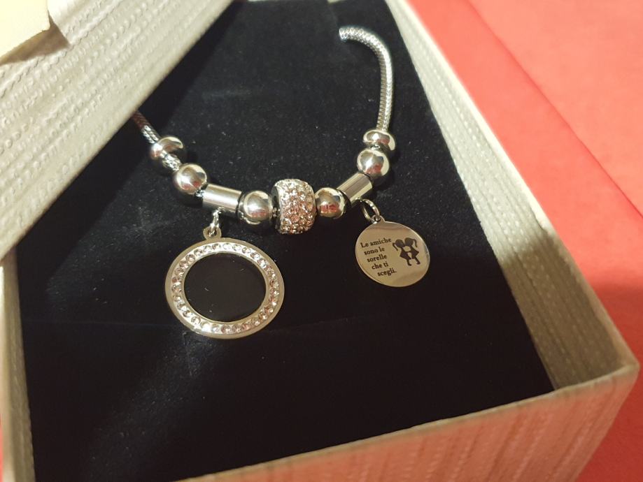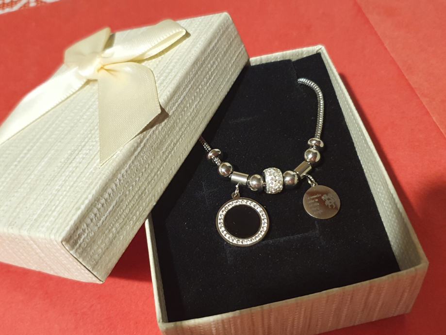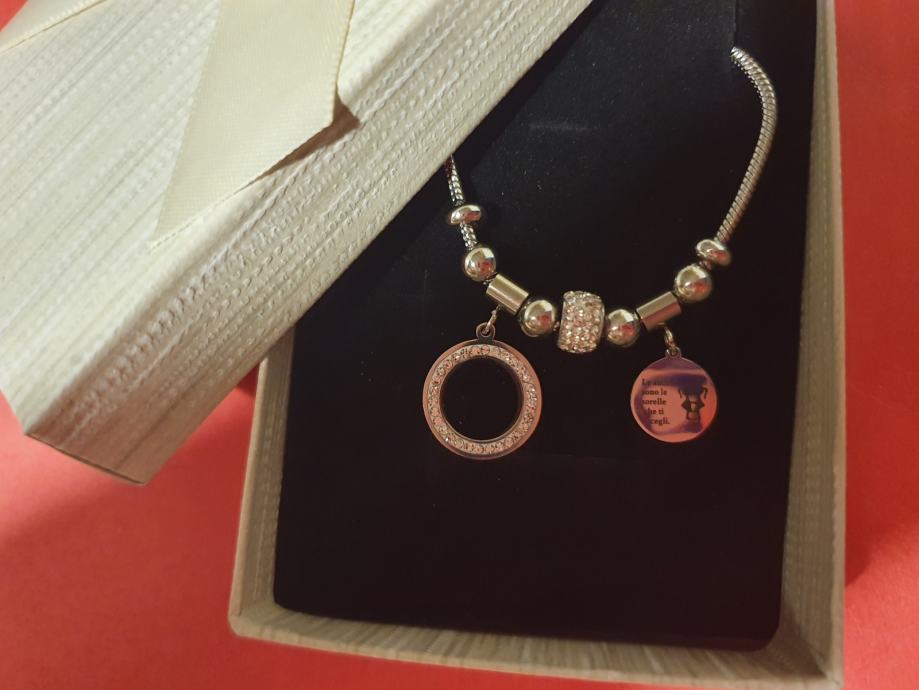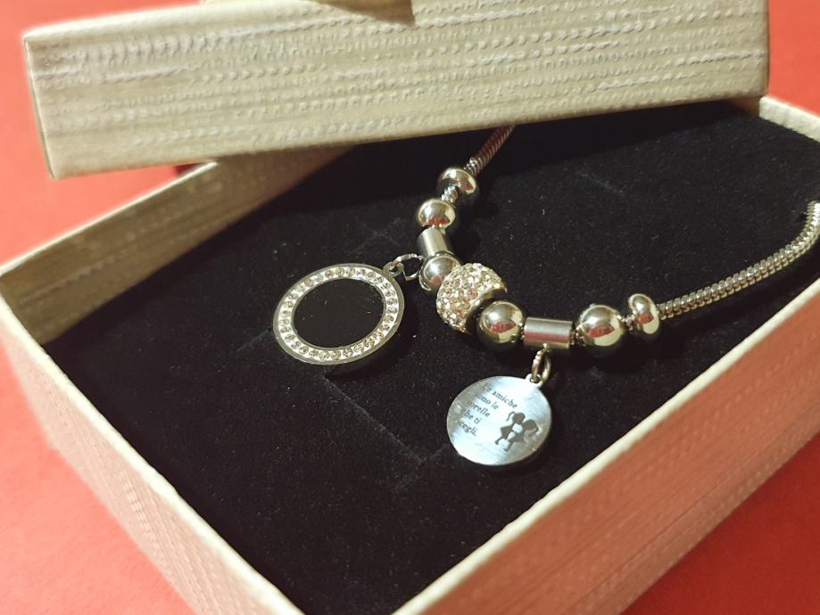 Narukvica je personalizirana što znači da birate privjeske na njoj (slovo, djetelina, srce, zvijezda, djevojčica, drvo života, anđeo, čudotvorna medaljica Majka Božja, križić, anđeosko krilo, sidro, zvijezda, sv.Benedikt, jednorog, slonić, sova, šapa, obitelj, djevojčica i dječak, itd.)