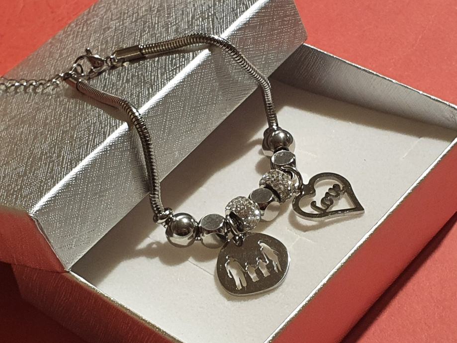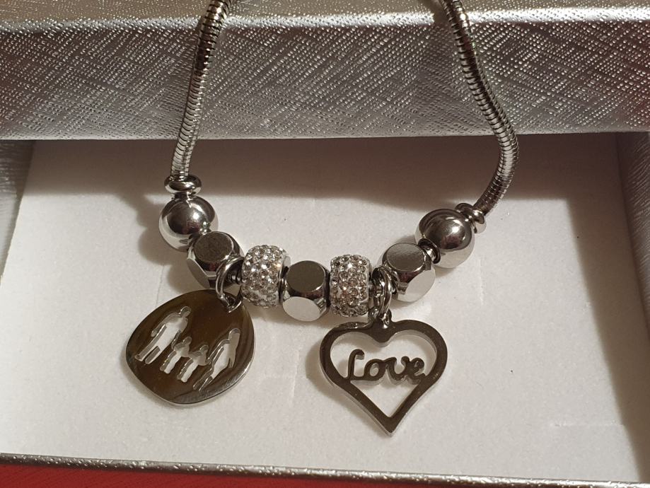 Narukvica je personalizirana što znači da birate privjeske na njoj (slovo, djetelina, srce, zvijezda, djevojčica, drvo života, anđeo, čudotvorna medaljica Majka Božja, križić, anđeosko krilo, sidro, zvijezda, sv.Benedikt, jednorog, slonić, sova, šapa, obitelj, djevojčica i dječak, itd.)