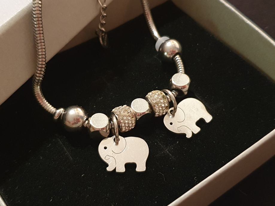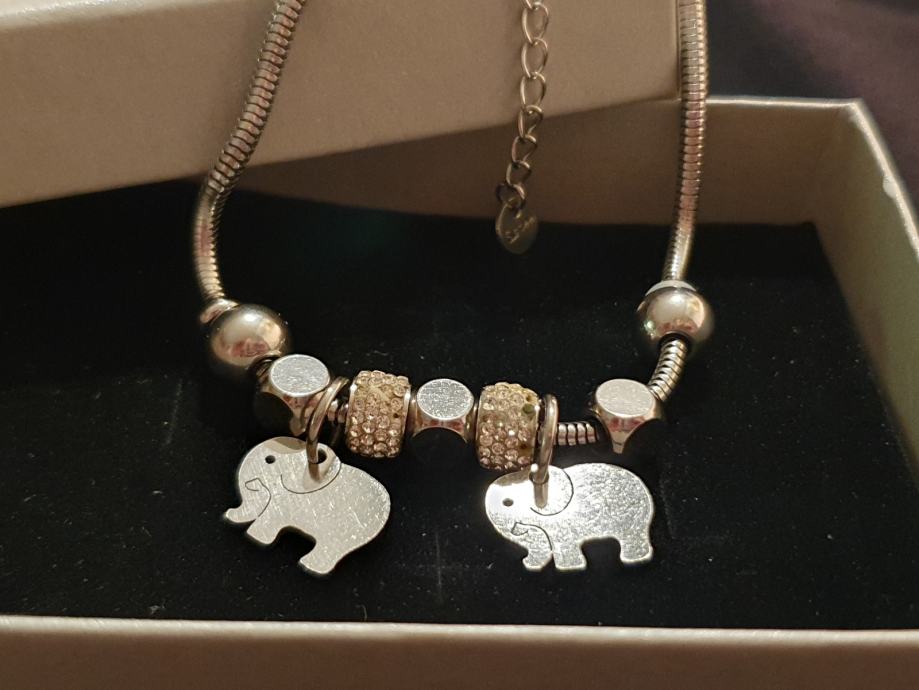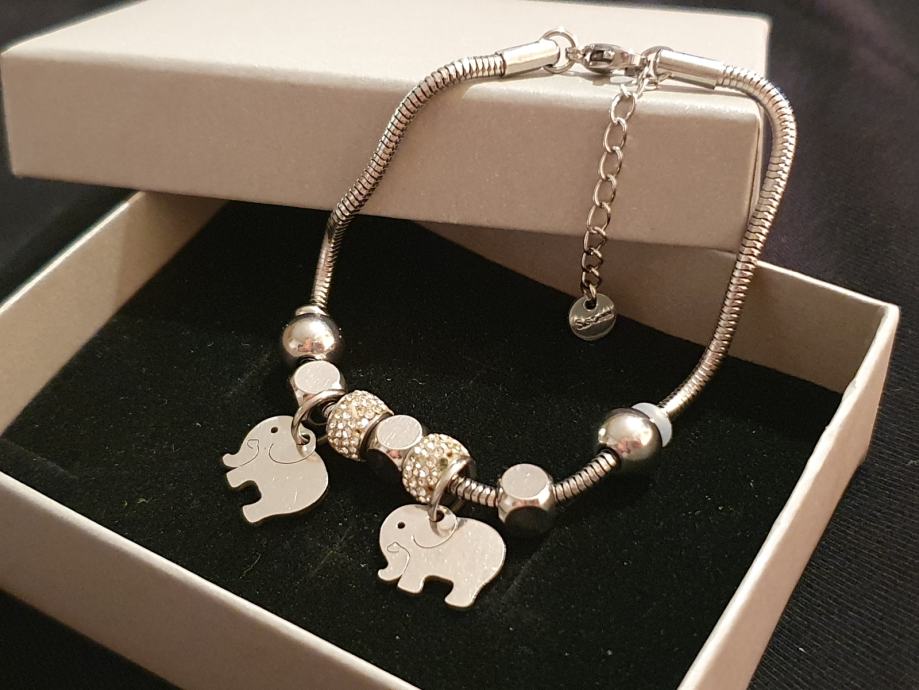 Narukvica je personalizirana što znači da birate privjeske na njoj (slovo, djetelina, srce, zvijezda, djevojčica, drvo života, anđeo, čudotvorna medaljica Majka Božja, križić, anđeosko krilo, sidro, zvijezda, sv.Benedikt, jednorog, slonić, sova, šapa, obitelj, djevojčica i dječak, itd.)