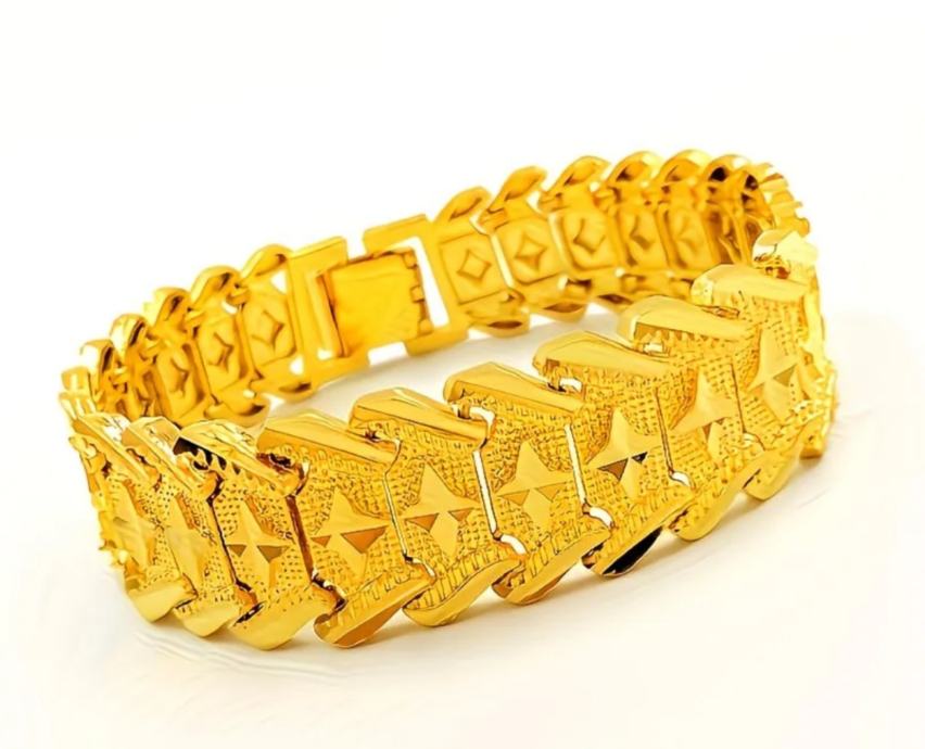 Prekrasna Narukvica od kirurškog čelika sa pozlatom 24 k dužine 20 širine 1.5 cm cijena je s dostavom gls ili box now po želji kupca upiti inbox