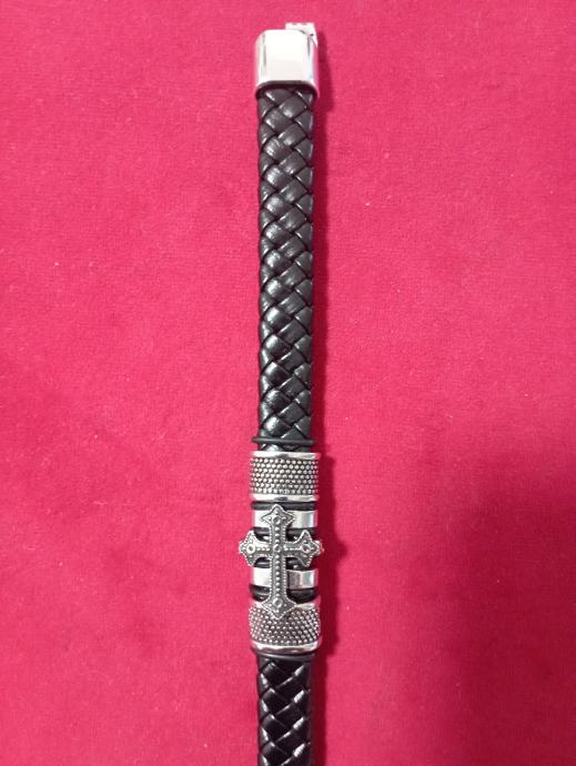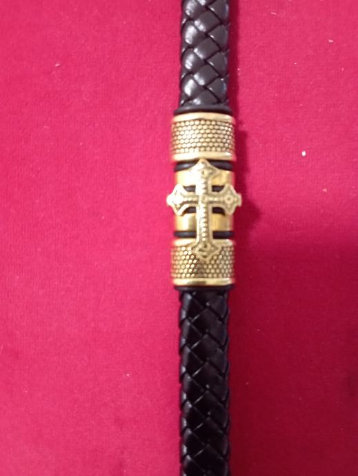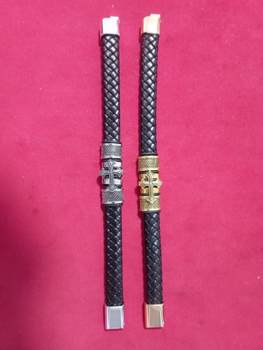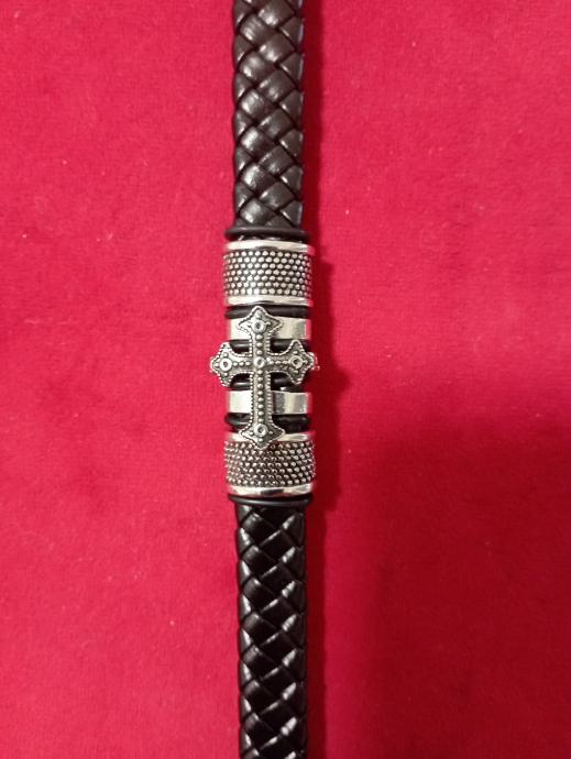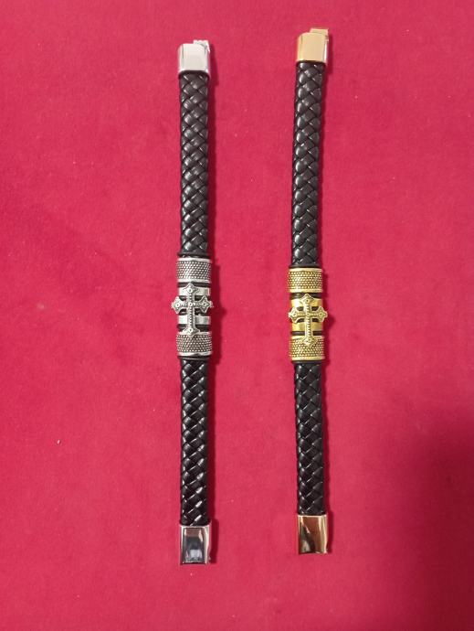 Narukvica s križem,vjerska, kršćanska,pletena koža,posebna..metalni dio,križ u zlatnoj ili srebru boji.po vašem izboru, pogledajte i ostale moje oglase šaljem poštom tekući