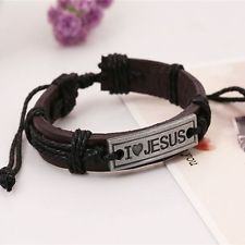 Kožna narukvica s metalnom pločicom - natpis "I love Jesus"