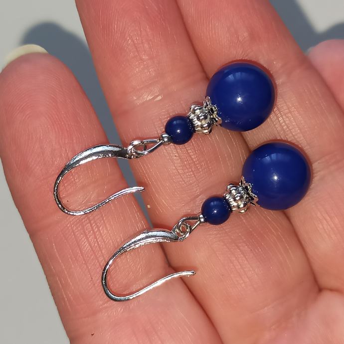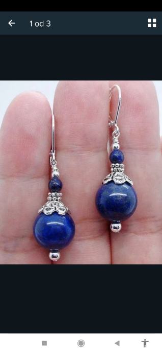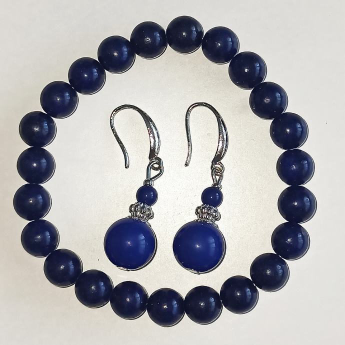 Narukvica je od 8 mm kuglica od tamnoplavog lapis lazulija, a naušnice su u kompletu u istom tonu.