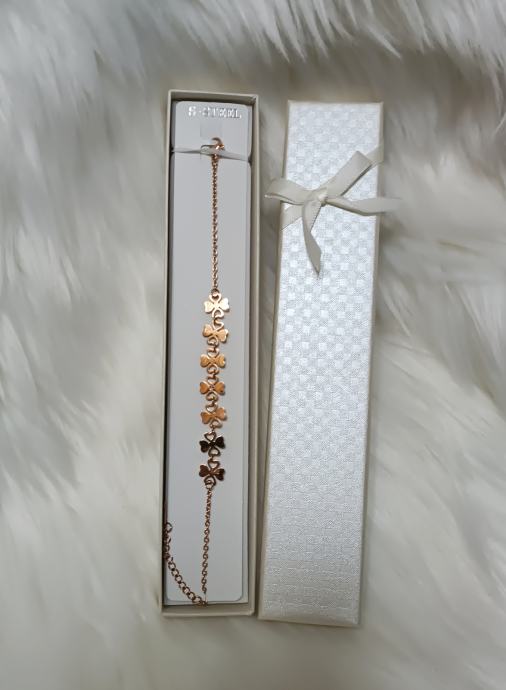 narukvica od nehrđajućeg čelika boje crvenog zlata, s djetelinama i lančićem