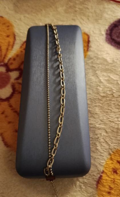 Narukvica od nehrđajućeg čelika srebrne boje. Narukvica ima dva sloja - jedan s finim kuglicama i drugi s ukrasnim karikama pravokutnog lagano zaobljenog oblika. Može se nositi sama ili u kombinaciji s drugim nakitom.