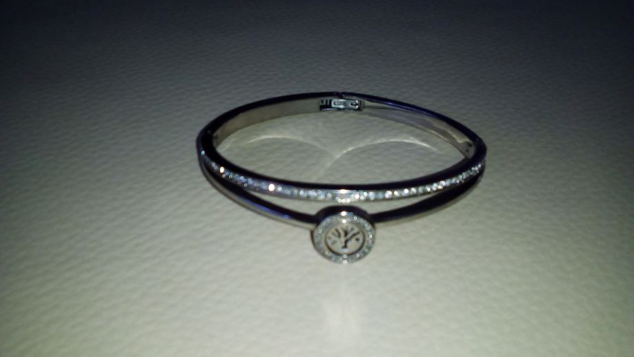 6 x 5 cm. Promjer. OPIS: Jedan od simbola Lotusa je njihovo drvo života, drevni simbol koji donosi rođenje, radost, snagu, zaštitu, ljepotu i mudrost. Kruta narukvica sa sredine se dijeli u dva reda koja čine kompaktnu cjelinu, ali se izdvajaju svojom različitosti. Drvo života nalazi se u centralnom dijelu narukvice i okruženo je cirkonima.