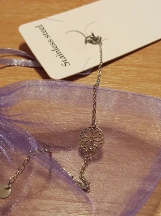 otpuno nova simpatična narukvica od nehrđajućeg čelika srebrne boje sa privjeskom u obliku finog cvjetnog ornamenta.
