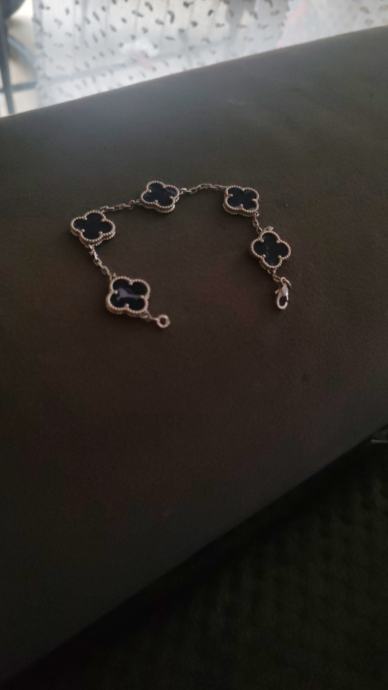 Prodajem elegantnu narukvicu od nehrđajućeg čelika s motivom djeteline s 4 lista. Narukvica se sastoji od pet crnih cvijetova povezanih finim lančićem u srebrnoj boji. Diskretna je i moderna, prikladna za svakodnevno nošenje. Materijal nehrđajućeg čelika osigurava trajnost i otpornost na habanje.