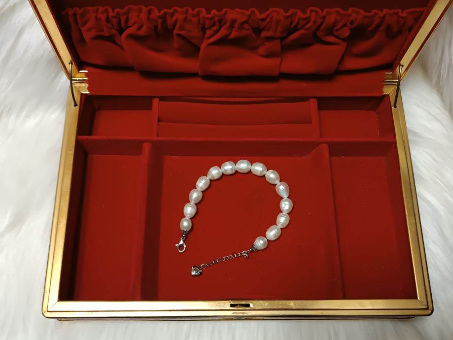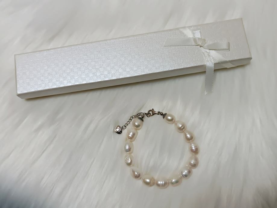 nova nekorištena narukvica od rječnih bisera, u ukrasnoj kutiji