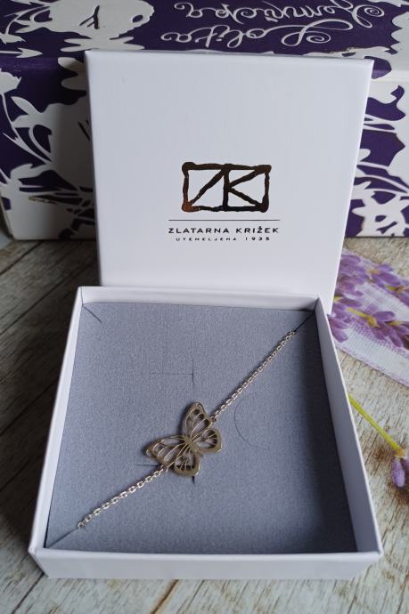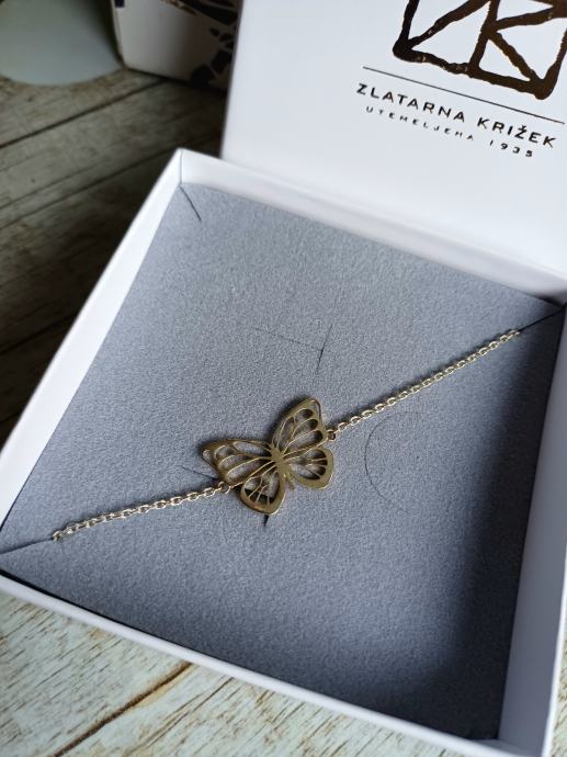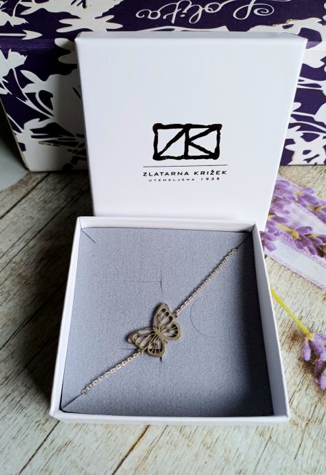Srebrna narukvica s motivom većeg leptira. Nova, u originalnom pakiranju. Zlatarna Križek.