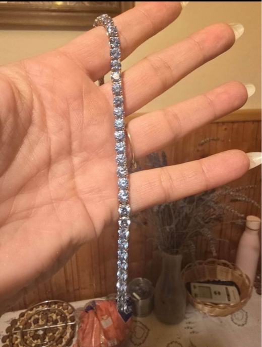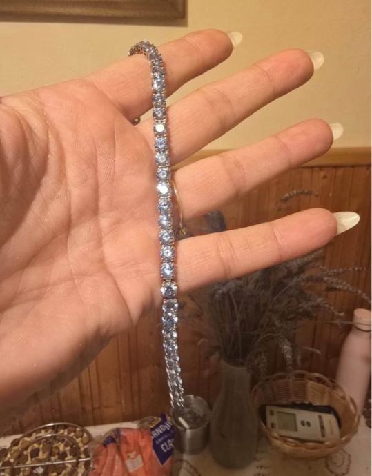 Elegantna Swarovski narukvica izrađena od kvalitetnog nehrđajućeg čelika, potpuno nova bez etikete. Krasi je niz prekrasnih kristala koji hvataju svjetlost i stvaraju predivan sjaj na zapešću.