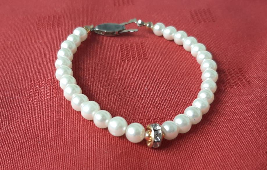 Narukvica u vidu bisera sa ukrasom od štrasa.
