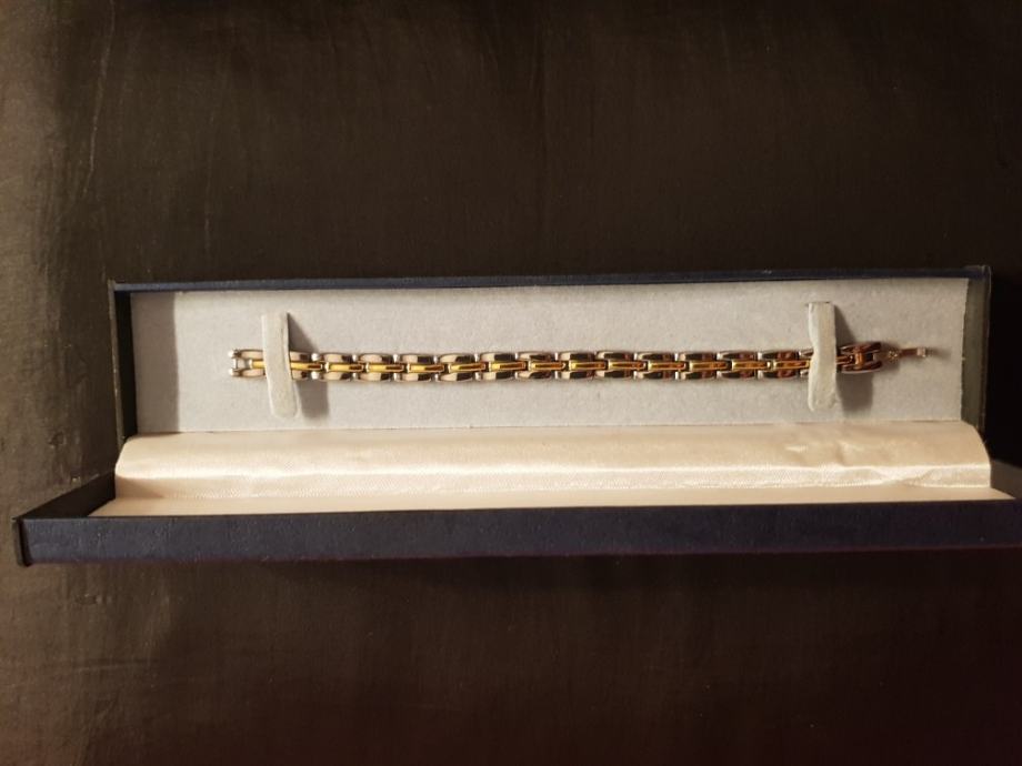 kirurški čelik sa pozlatom, zakopčana dužine 18.5 cm, rasirena dužine 20cm.