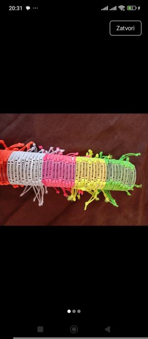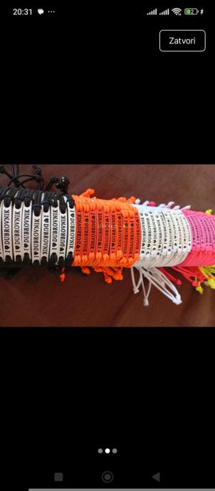 Prodaju se prepoznatljive "I ❤️ DUBROVNIK" narukvice, savršene kao uspomena na ljetovanje, poklon za prijatelje ili kao asortiman za suvenirnice. Narukvice su lagane, upečatljive i dolaze u širokom spektru boja. 60 komada /20 eura