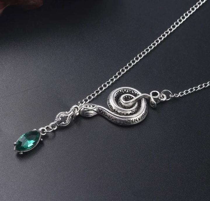 Ova magična ogrlica inspirirana je Harry Potterom, simbolično kombinirajući srebrnu i zelenu boju.