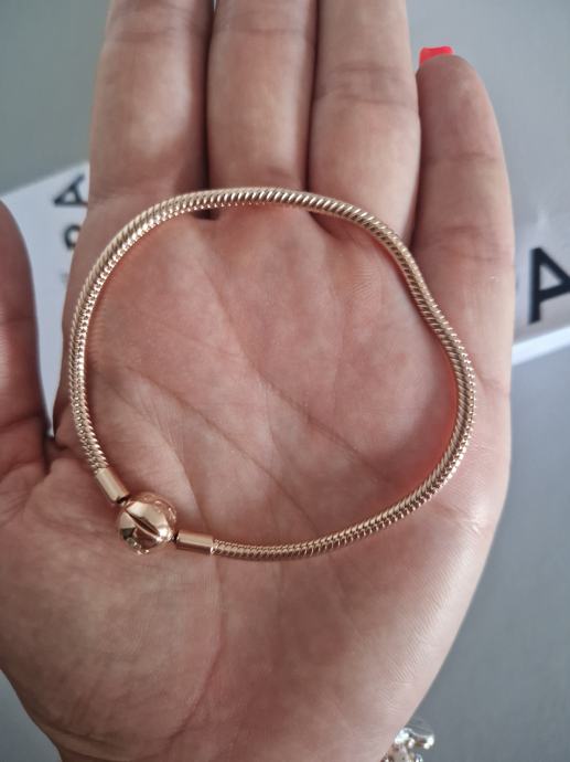 Započni svoju osobnu Pandora priču s elegantnom narukvicom sa zmijskim vezom s 14k roza pozlatom. Kao savršeno platno za tvoju kreativnost, ova ručno dovršena narukvica može se stilizirati na bezbroj načina. Ispuni je željenim privjescima i kopčama, nosi je samu za jednostavan, decentan look ili je kombiniraj s kontrastnim narukvicama u zabavnoj igri s teksturama – tvoja mašta je jedina granica!