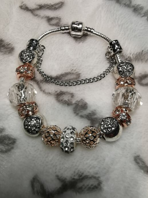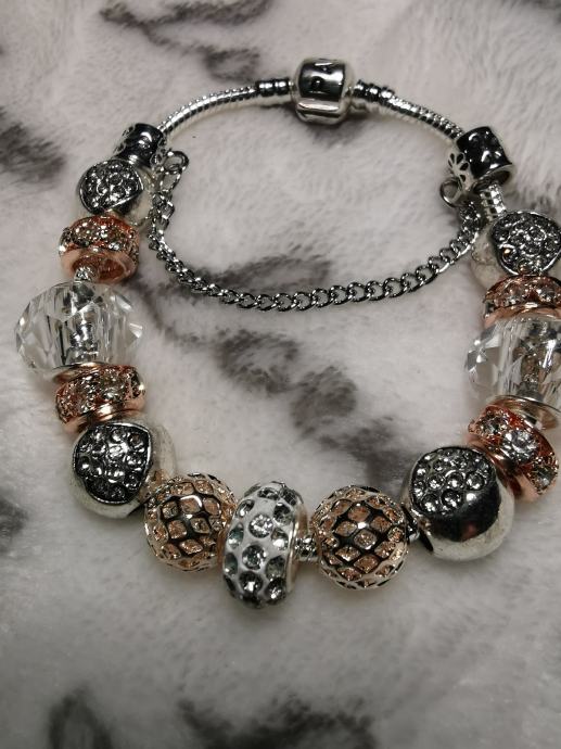 Nova, nenošena narukvica. Svi privjesci uključeni u cijenu. Nemam certifikat, nije srebro. Primopredaja Zagreb zapadni dio grada ili Trešnjevka. Šaljem i poštom ili Tiskom.Ukoliko trebate dustbag/ukrasnu vrećicu s logom, možemo i to dogovoriti. Dostupna u veličini 18, 19 i 20 cm. Na fotografiji je veličina 19 cm.