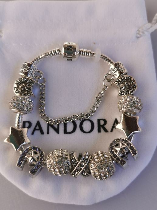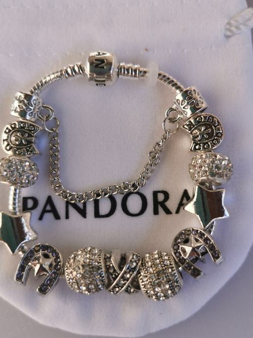 Nova, nikad nošena narukvica, dostupna u veličini 18, 19 ili 20 cm. Nemam certifikat. Privjesci uključeni u cijenu. Primopredaja Zagreb zapadni dio grada ili Trešnjevka. Šaljem i poštom ili Tiskom. Po potrebi se može dodati i dustbag. Na slici je veličina 19 cm.