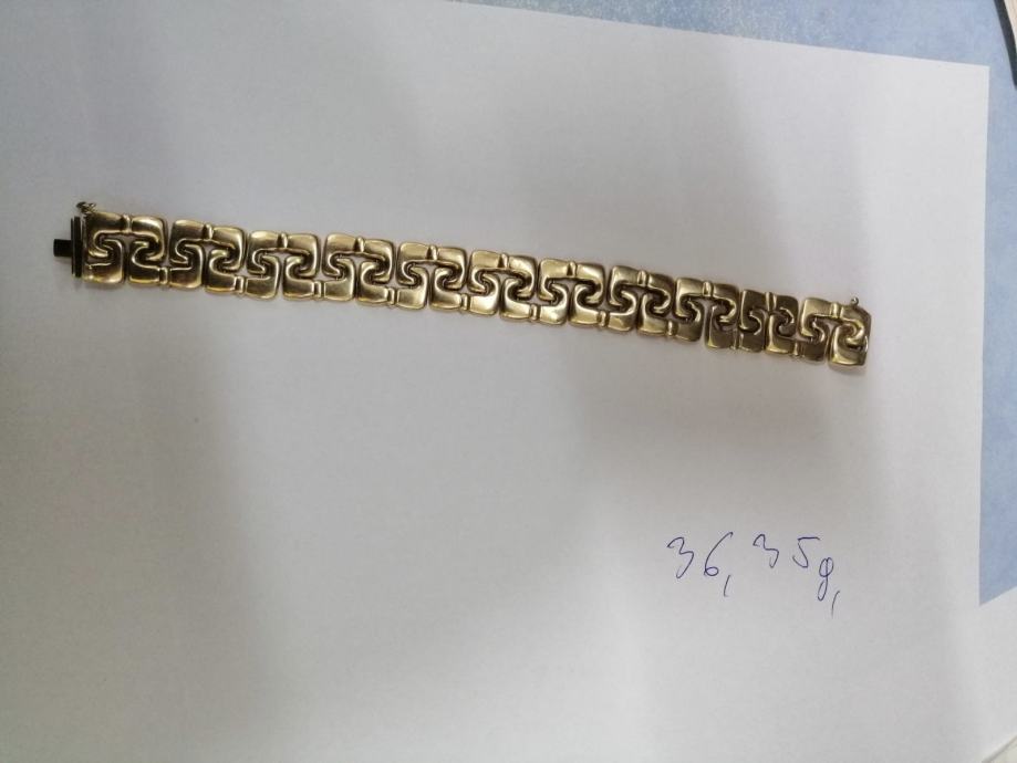 Prodajem mušku zlatnu narukvicu 14 karatno zlato 585.Dužina 21 cm širina 2cm.Težina 36.35 grama.