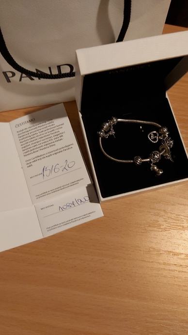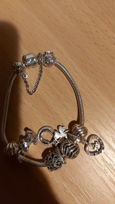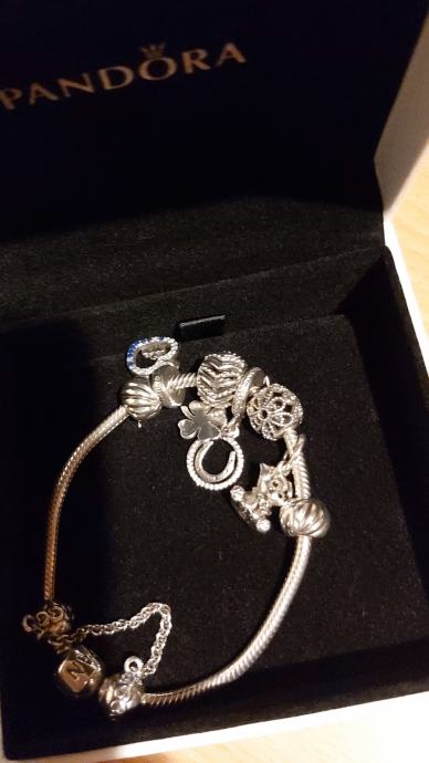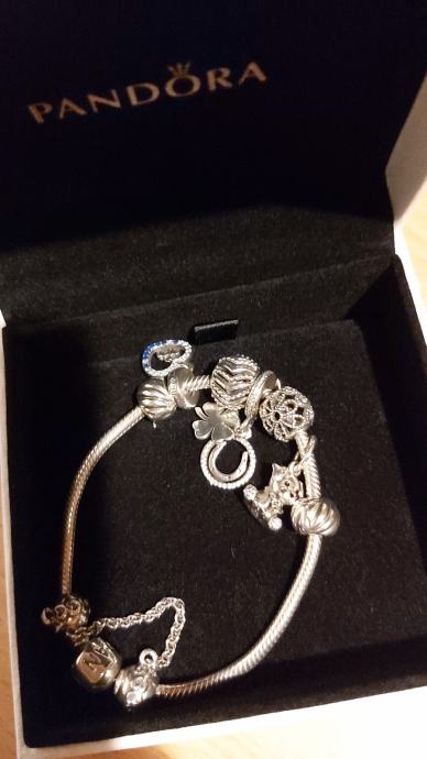 Prodajem orginal srebrnu narukvicu "Pandora" sa 7 privjesaka, lančićem i kočnicama. Nošena par puta.