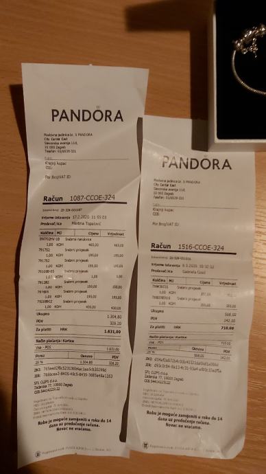 Narukvica i privjesci kupljeni u veljači i ožujku ove godine. Dokaz računi i garancija.
