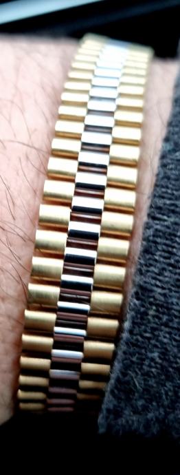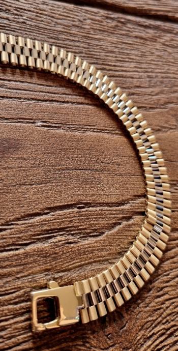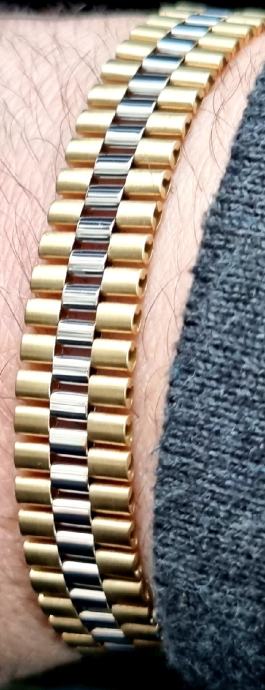 Prekrasna muška narukvica kombinacija bijelo i žuto zlato, brušeni mat + polirana sredina