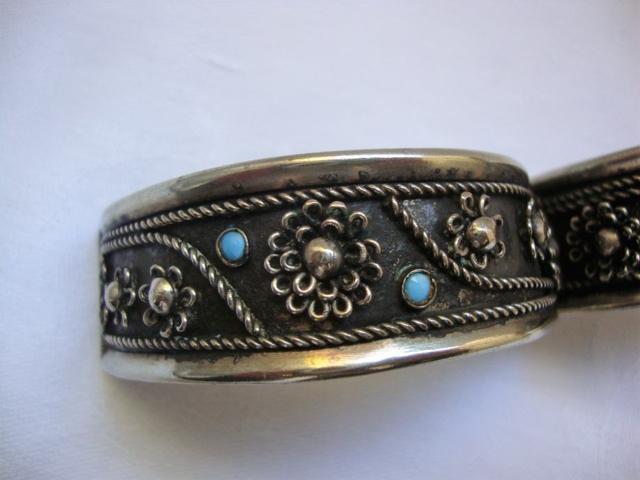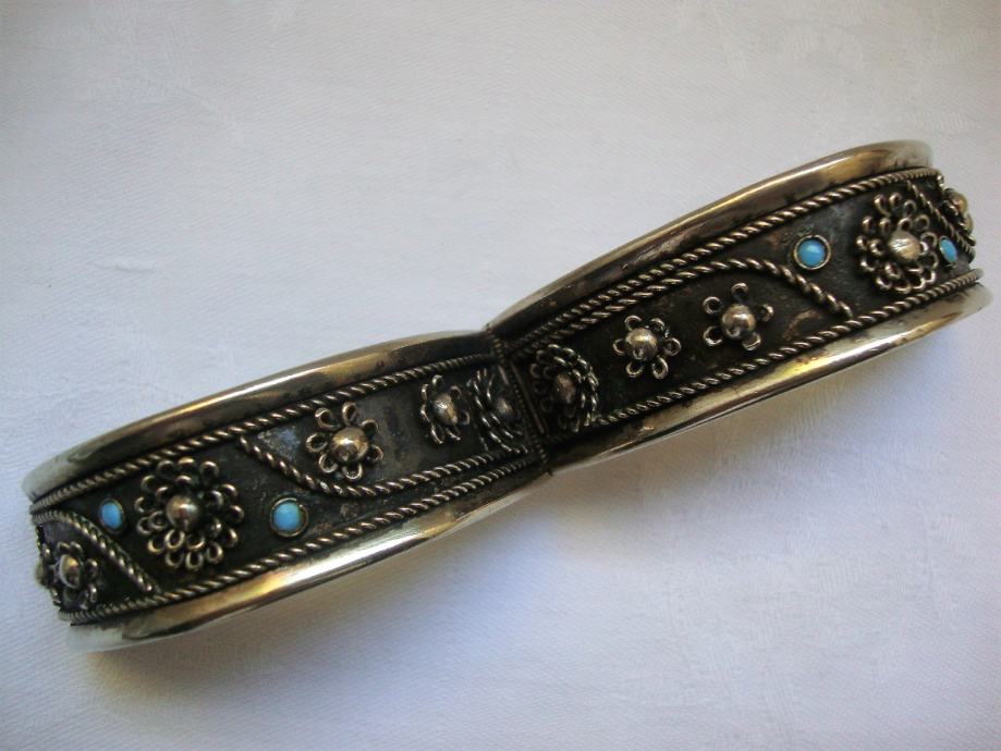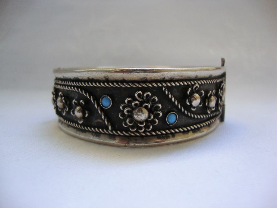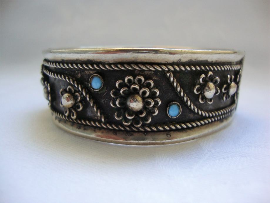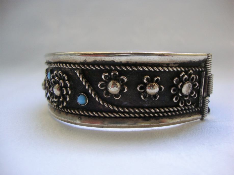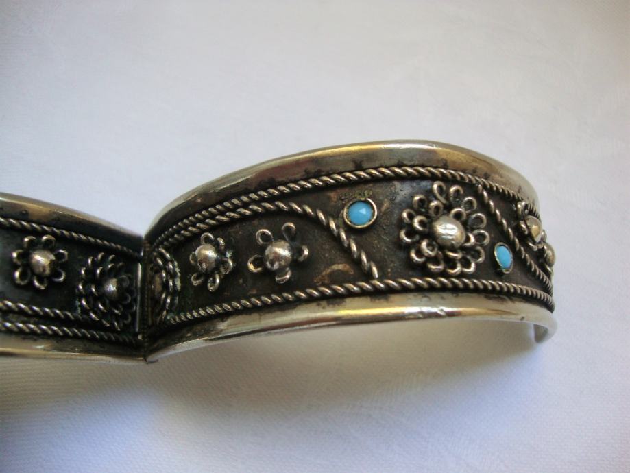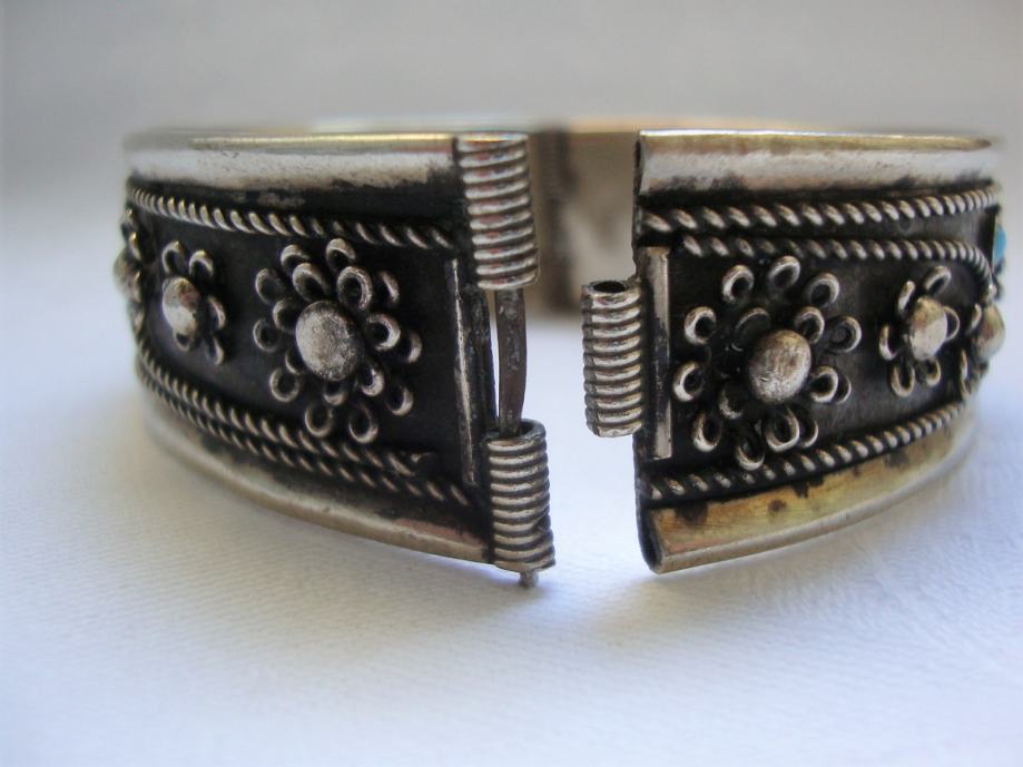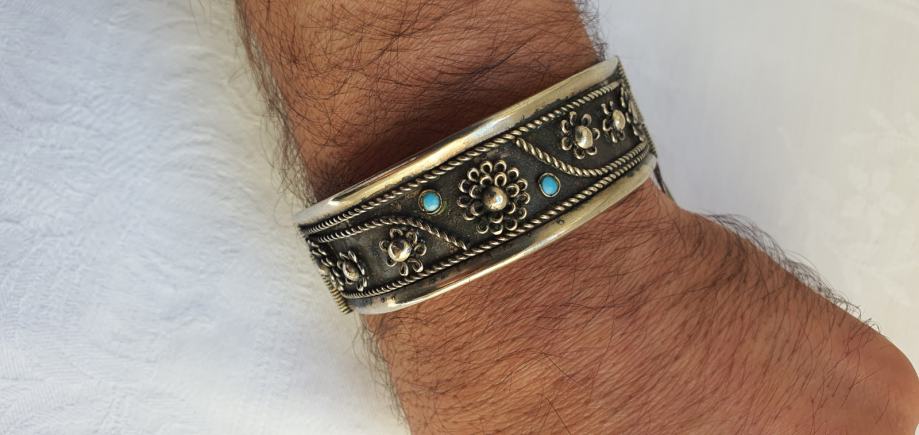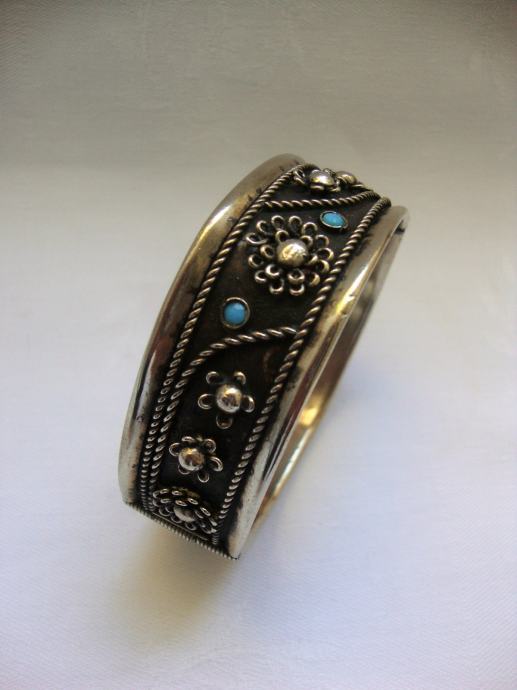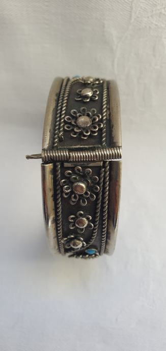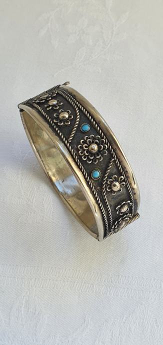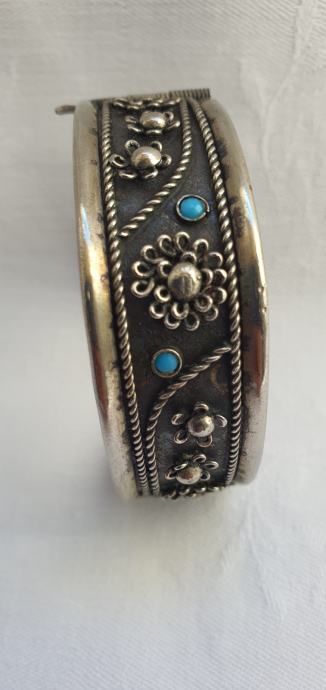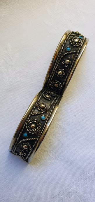 Stara etno predivna i unikatna narukvica ukrašena cvijetićima i tirkizima izvrsno očuvana nosiva