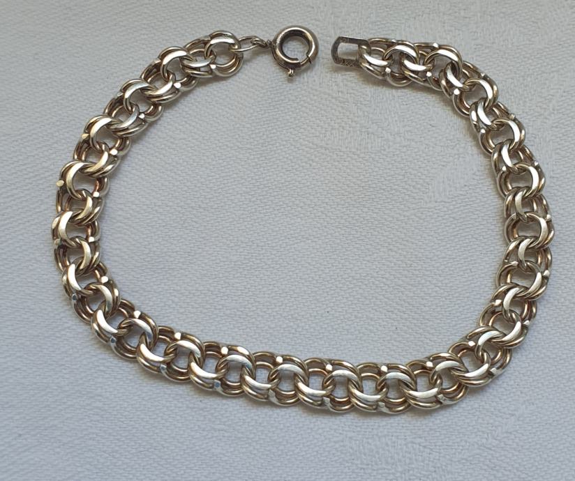 Krasna vintage srebrna narukvica rucni rad u srebru 925 krasnog pleta označena sterling silver zig majstora zlatara i 925 ukupne dužine 18,3 cm x.7 cm x 2/3 mm ukupne tezine:10,5 grama u perfektnom.stanju bez trahova nosenja idealna poklon u ponudi imate i ogrlicu