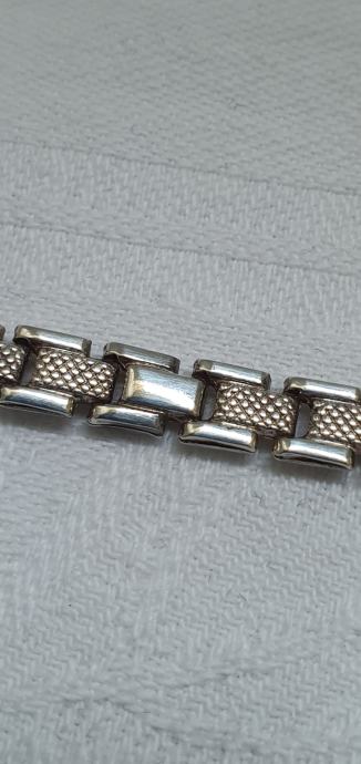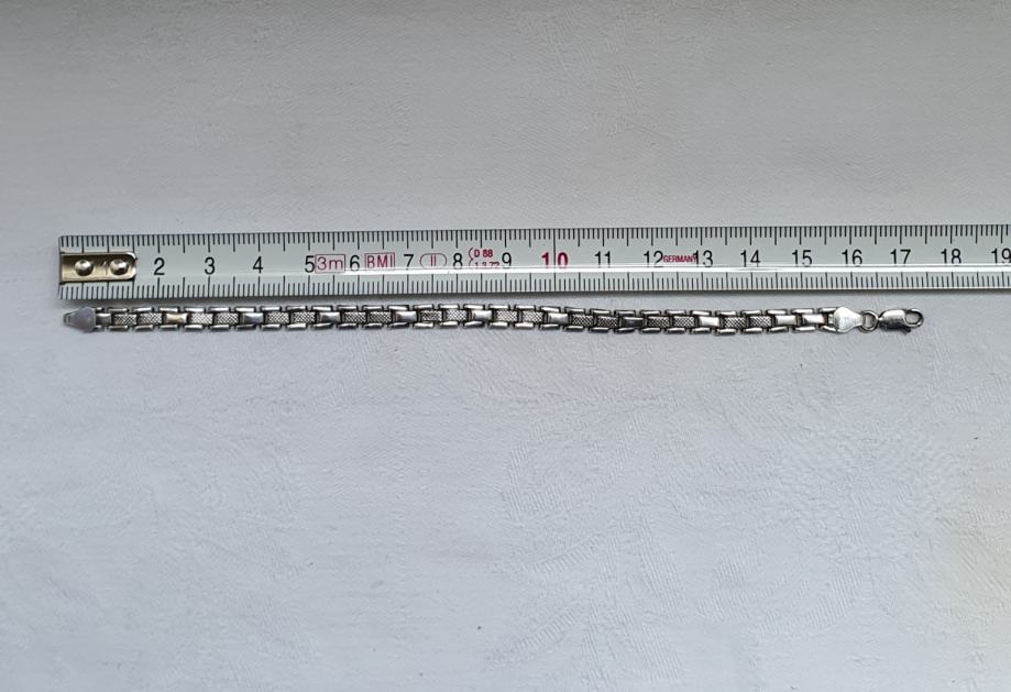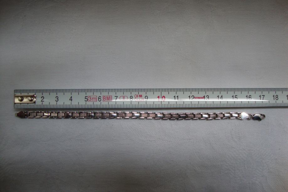 Ženska srebrna narukvica ukupne duzine 17,3cm x 5 mm ,dakle za tanju užu ruku izmjerite obim zgloba sa krojacnikm metrom ranije duzine 17 cm i vidite jel vam odgovara