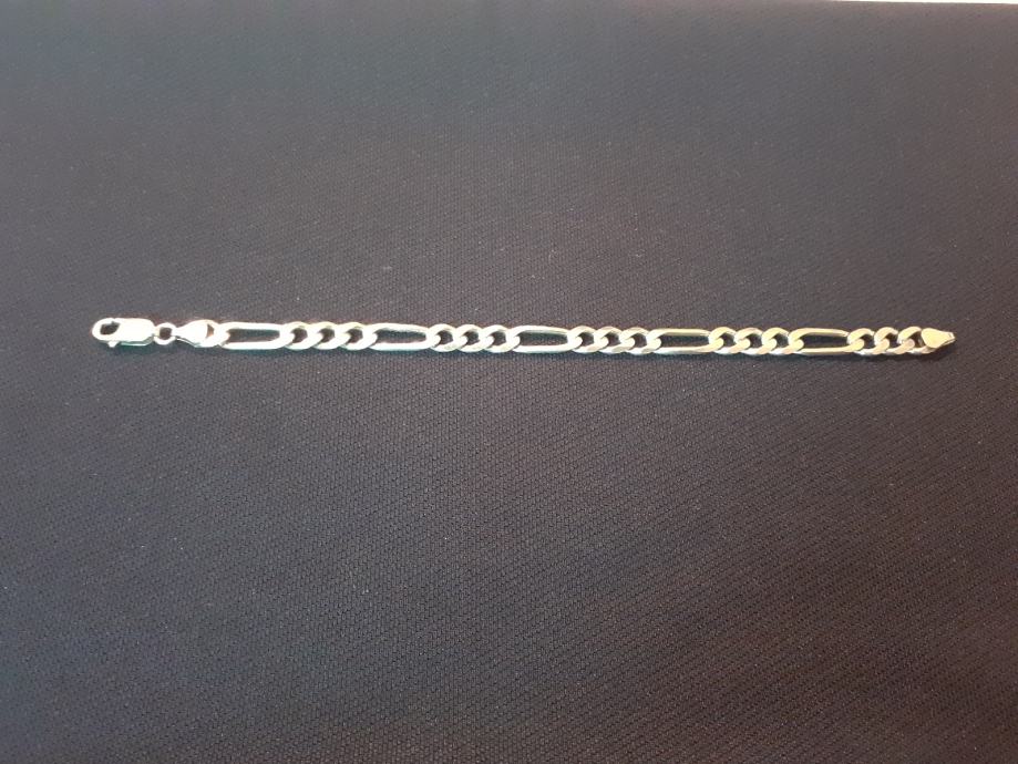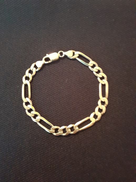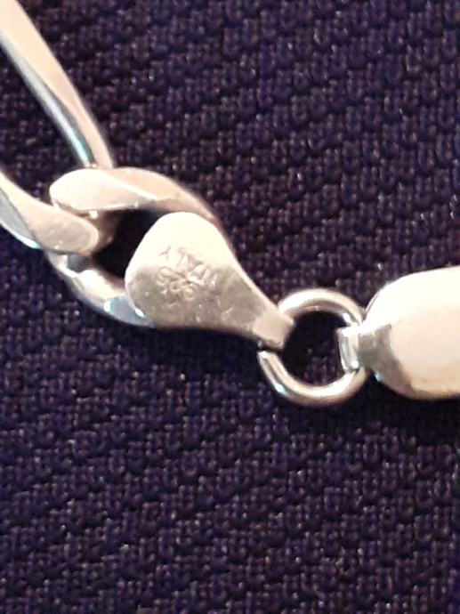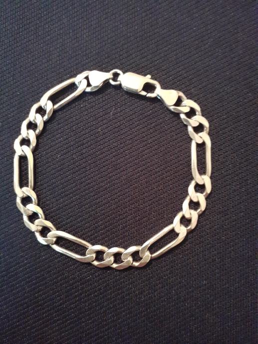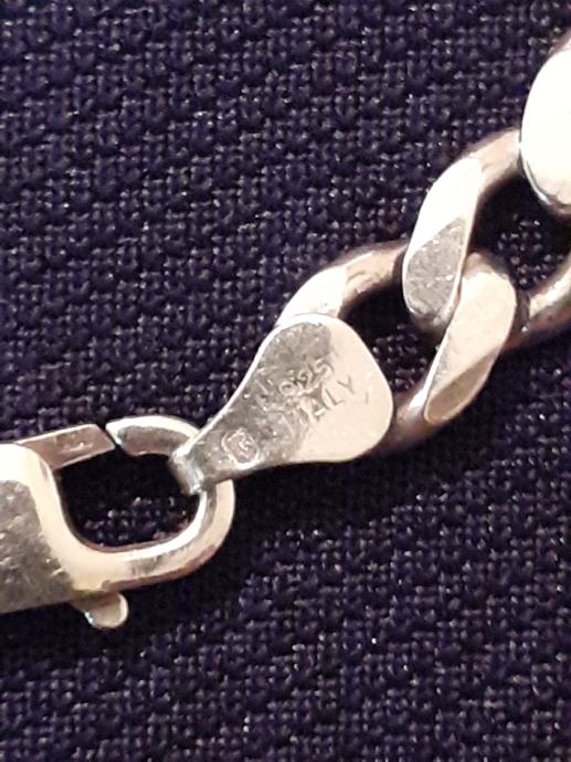 Prodaje se srebrna narukvica (testirana pozitivno na srebro) sa tri žiga 925 (kod jednog se zbog sitnoće broja na zatvaraču narukvice dobro vide brojke 25, dok je treći broj nečitak, moguće broj 9) dva žiga Italy, te još jednim žigom nečitljivom prodavatelju. Narukvica je dužine 21 cm. Cijena narukvice je 67 eura. Mogućnost osobnog preuzimanja u Zadru. Kontakt broj mobitela 091 131 10 36.