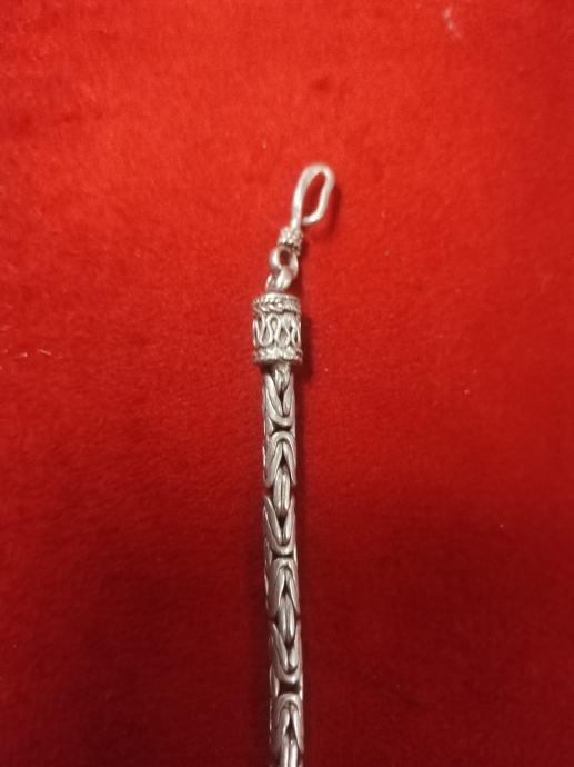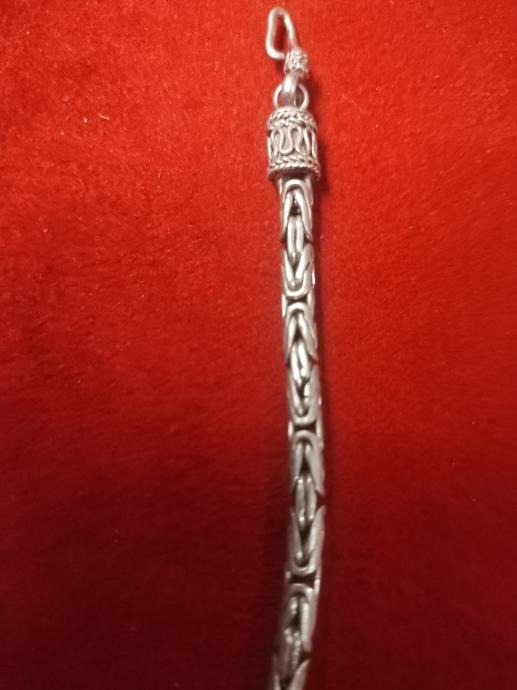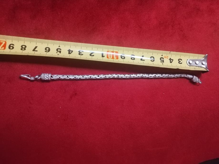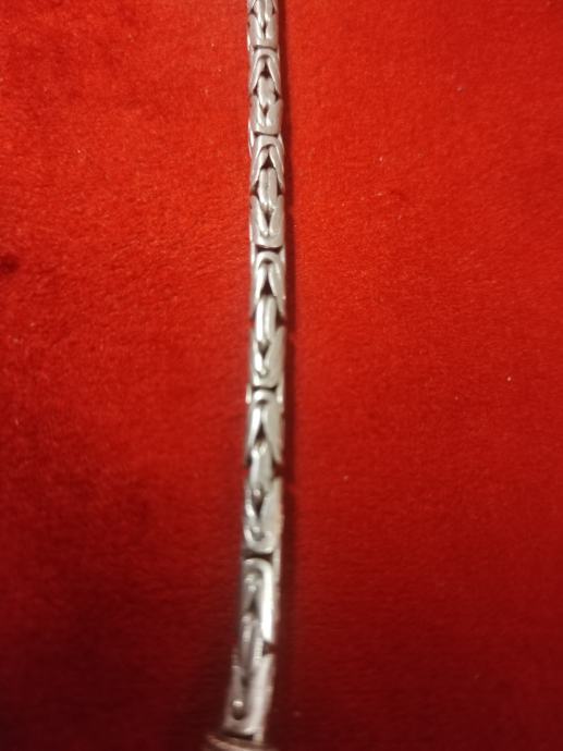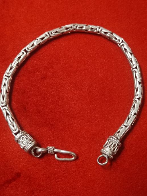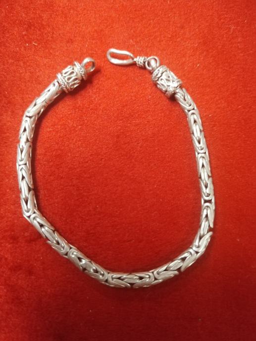 Prodajem srebrnu narukvicu s prepoznatljivim bizantskim pleturom. Narukvica je izrađena od srebra i ima praktičan kopčasti zatvarač s karičicom. Završeci su ukrašeni detaljnim ukrasnim elementima koji nadopunjuju ukupan izgled. Pleter je gust i kvalitetno izveden po cijeloj dužini narukvice. Mogući dogovor oko cijene i dostave