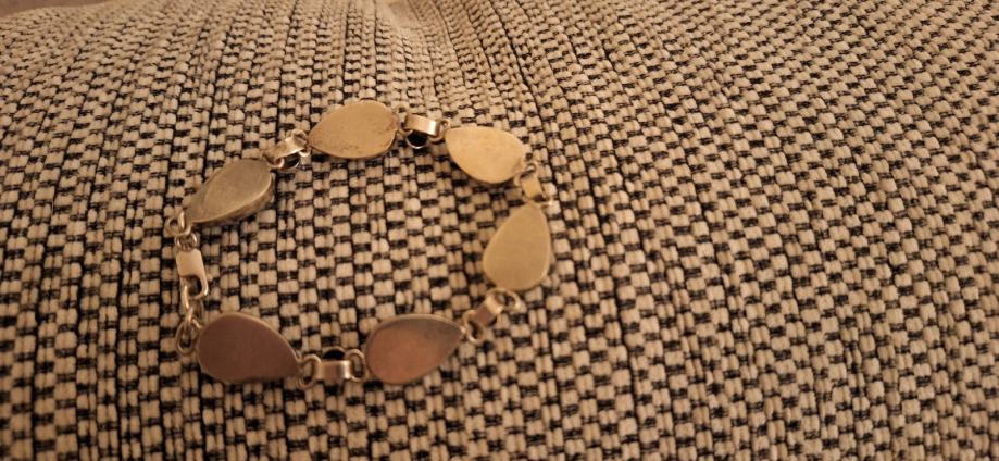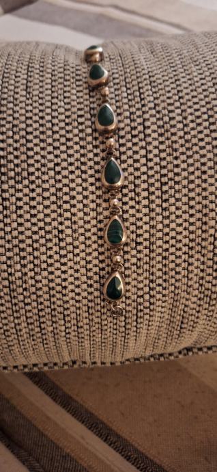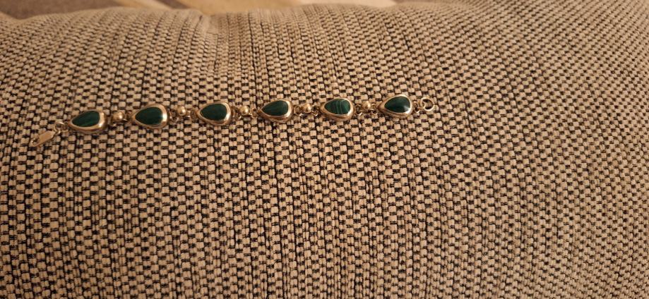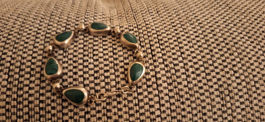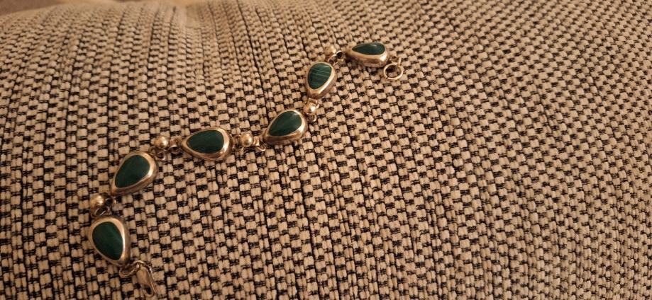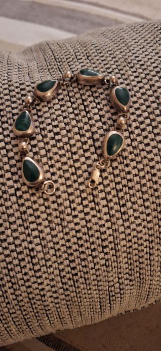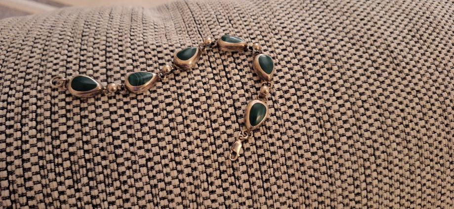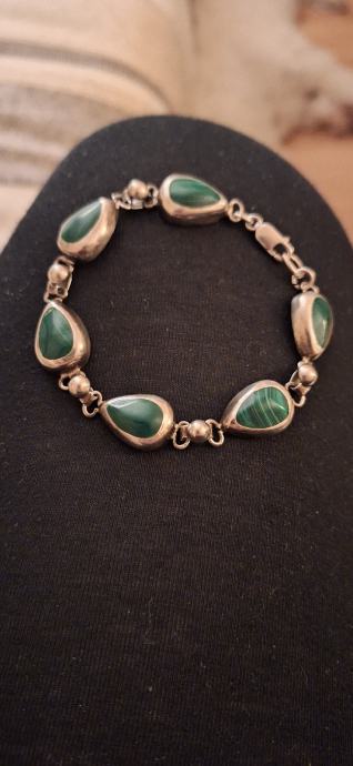 8" Vintage 950 Mexican Silver Malachite Bracelet Oval Links 33.8 Grams