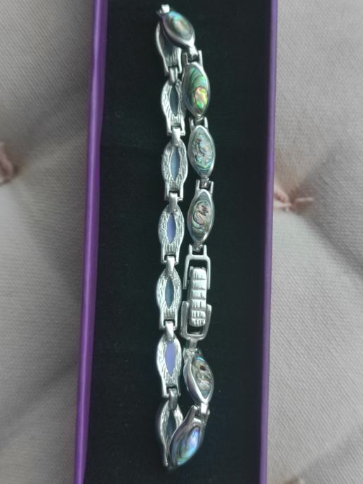 Nova, nenošena narukvica od pravog srebra Ag925 sa pravim sedefom. Težina: 12,54 g.