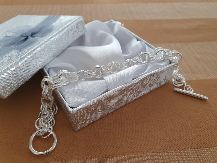 Narukvica 925 srebro, dužina narukvice je 18,5 cm, a širine 10 mm, posve nova, predivna, elegantna.