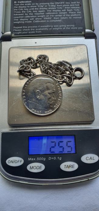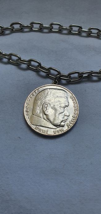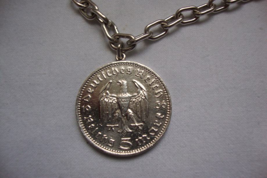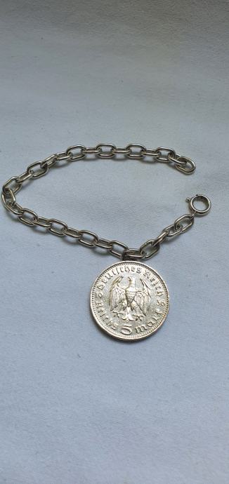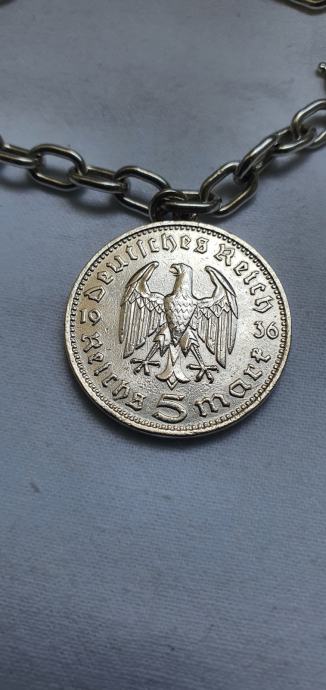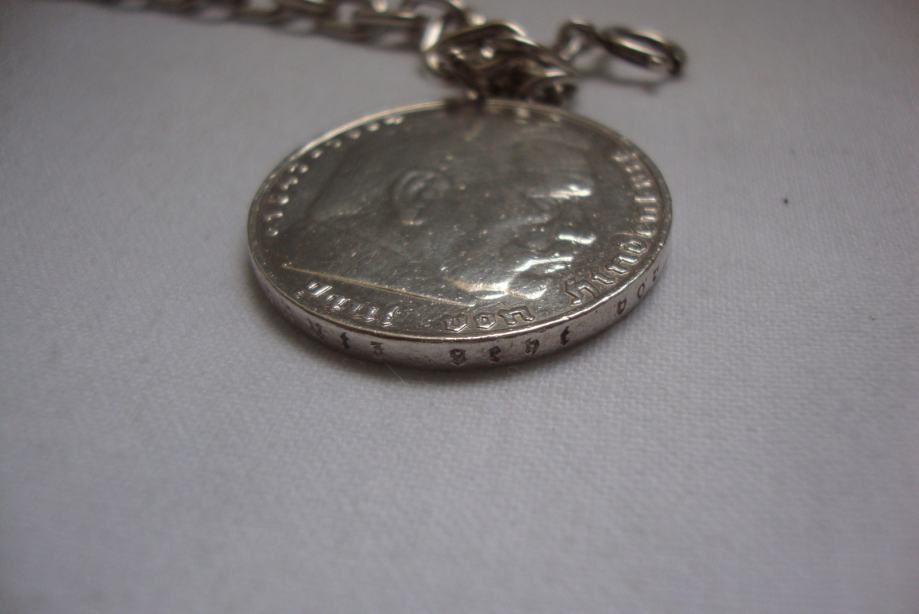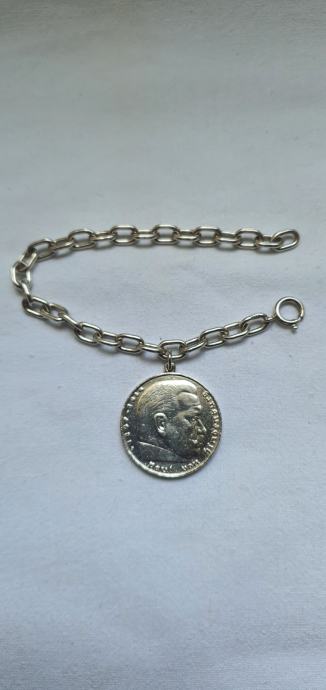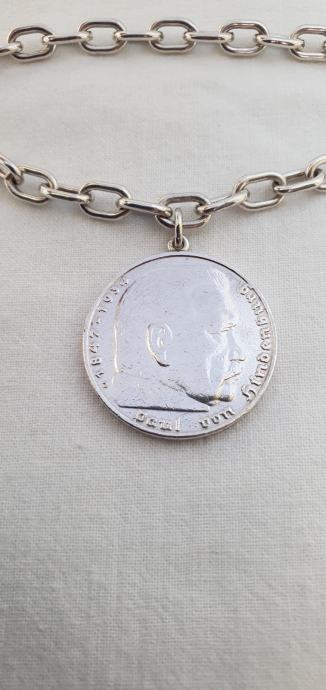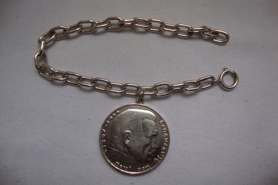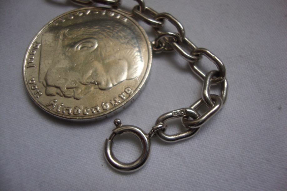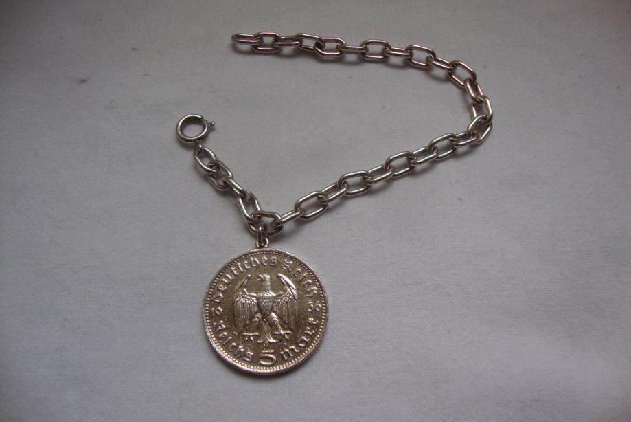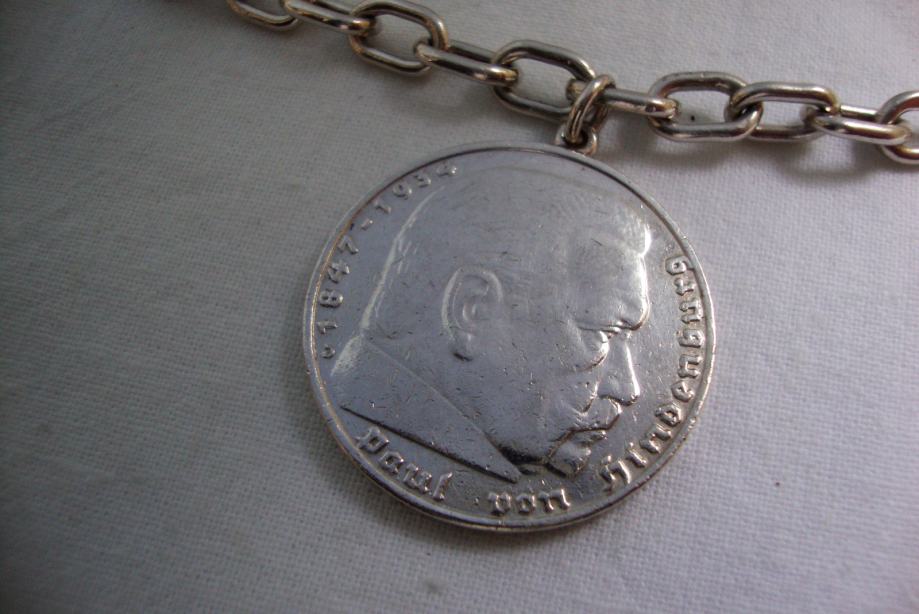 Vrlo lijep rad vez brodski lanac sidro ukraseno njemackom kovanicom od srebra iz 1936.godine