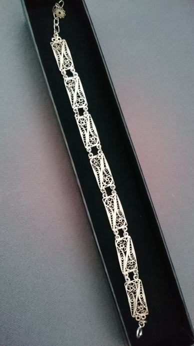 Ukupna dužina narukvice je 22 cm ukrasni dio sa karikama je 17 cm x 1 cm deblijne svaka karika prekrasno izrađena