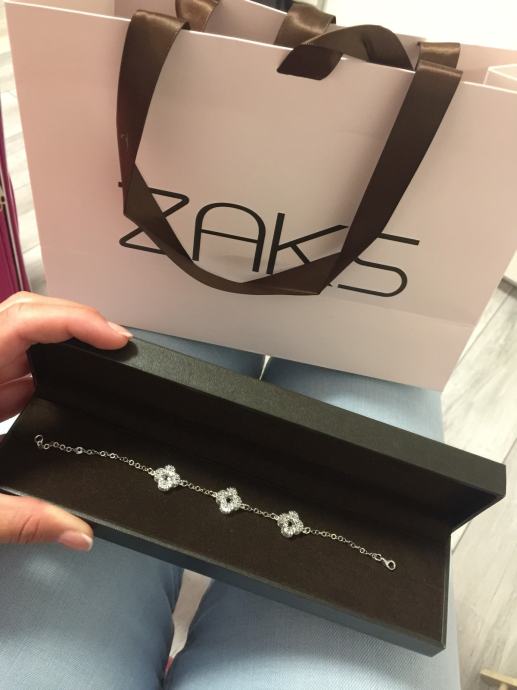 Prodajem navedenu narukvicu od bijelog zlata sa slike, uz pripadajuću ambalažu sa slike. Navedena dobivena na poklon, te nije nošena (stavljena na ruku za potrebe slikanja)