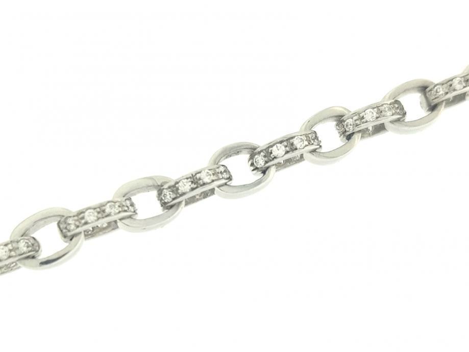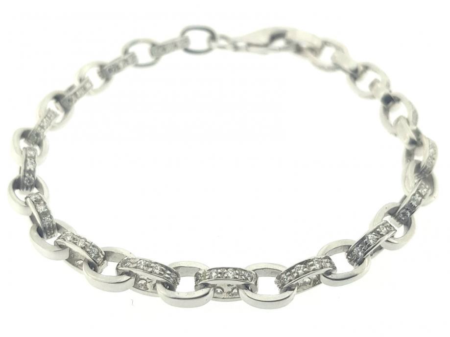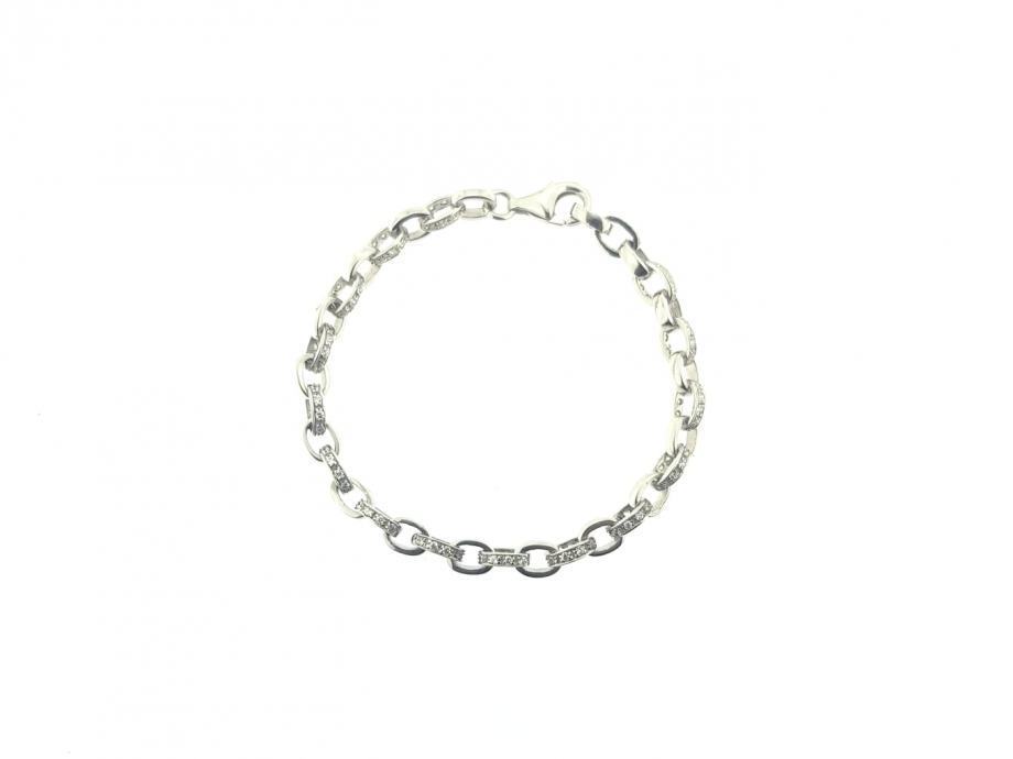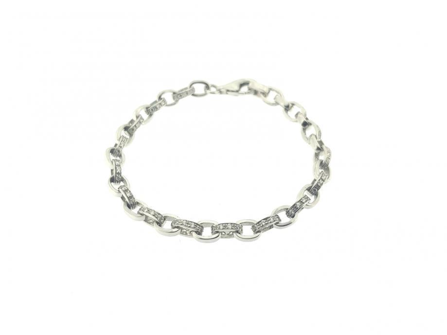Zlatna narukvica, ženska, bijelo zlato 14K, žig 585, kare vez, karike naizmjence s bijelim cirkonima.