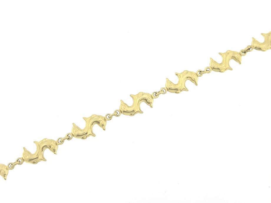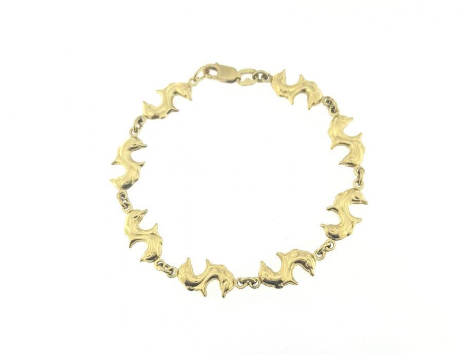 Zlatna narukvica, ženska, žuto zlato 14K, žig 585, delfinići, glat.