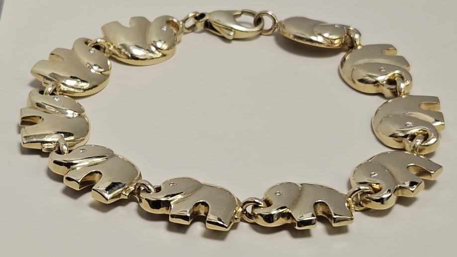 ZLATNA NARUKVICA SLONOVI 30,27G 18K S DIJAMANTIMA 0.05CT/ R1, RATE !