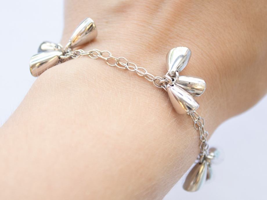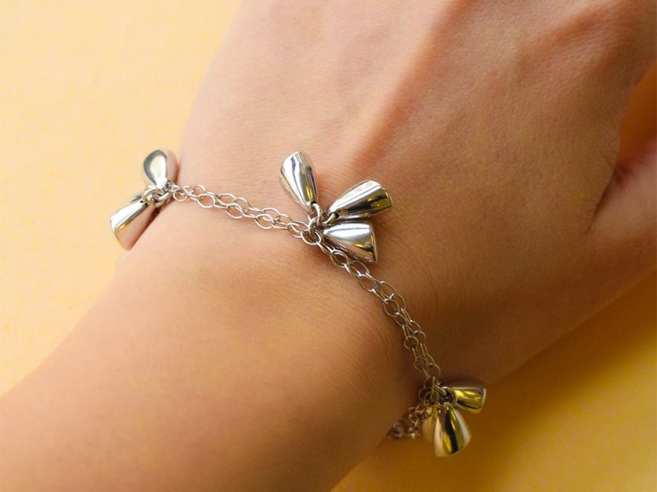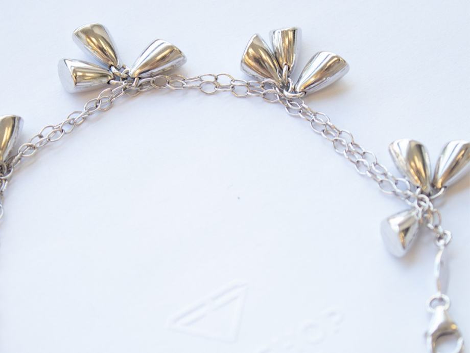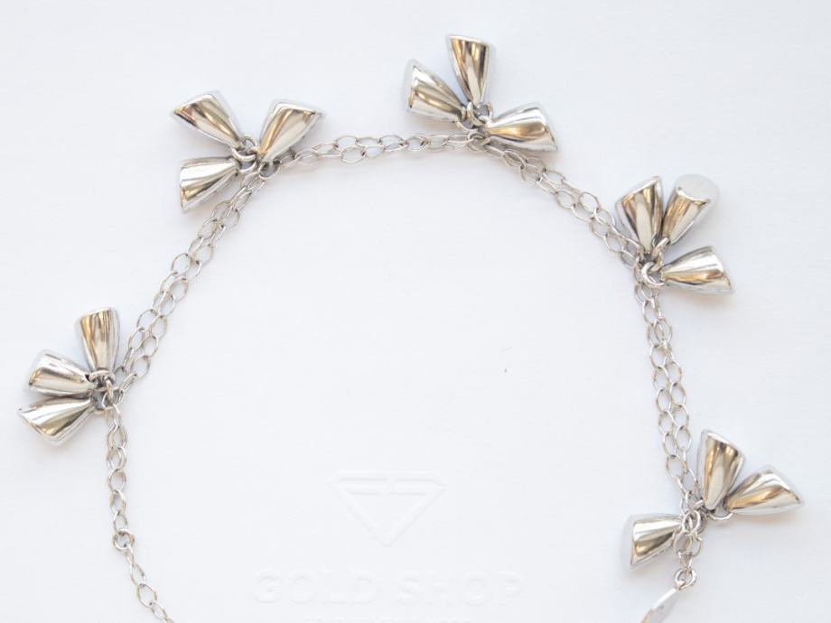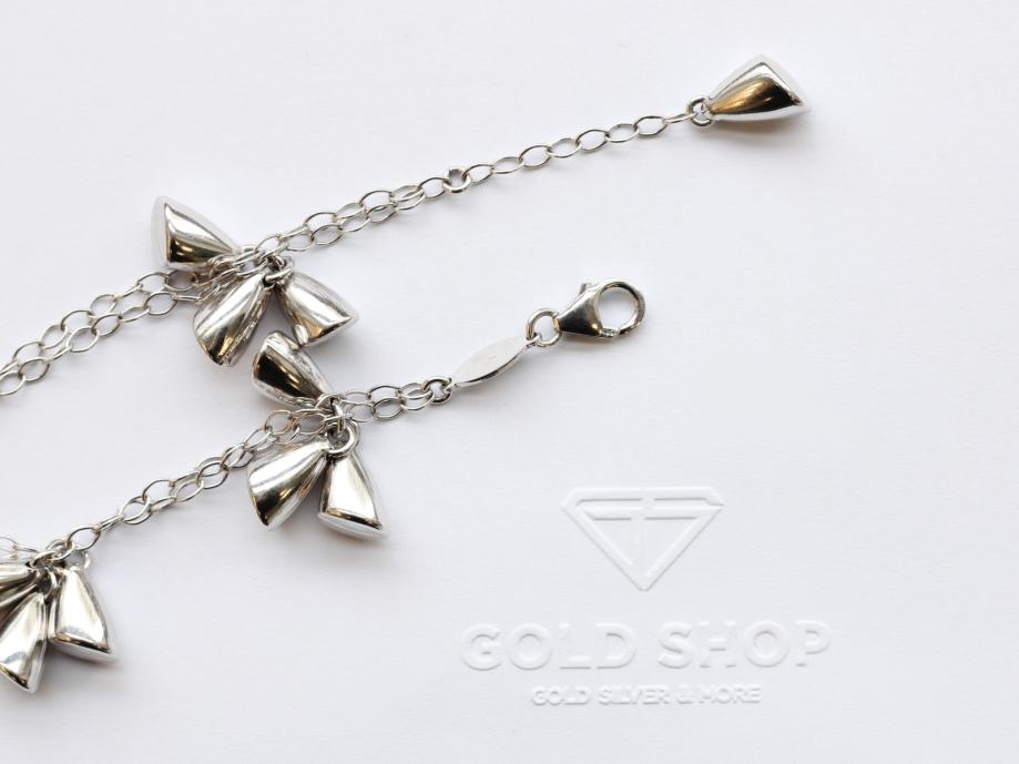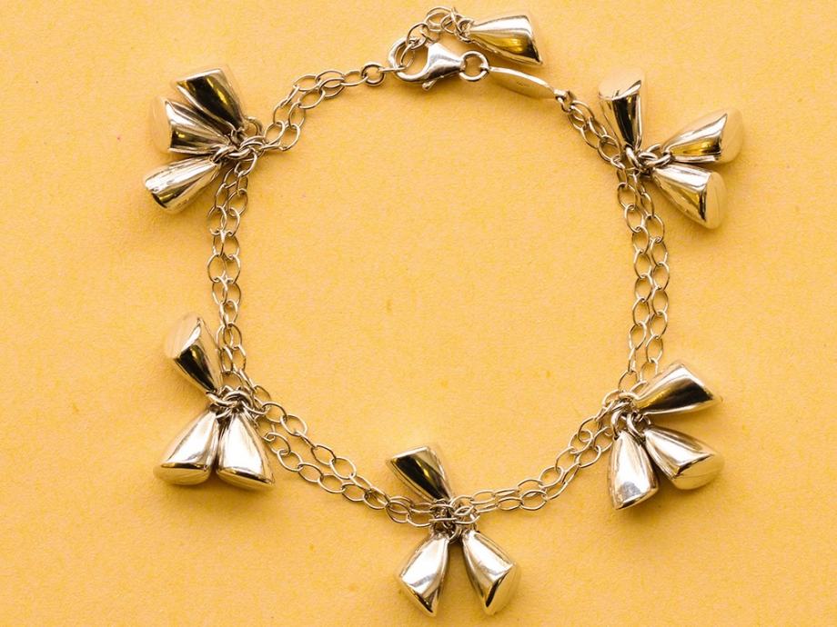 Zlatna narukvica, ženska, bijelo zlato 14K, žig 585, dupli kare vez + privjesci "zvončići".