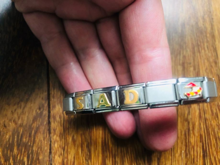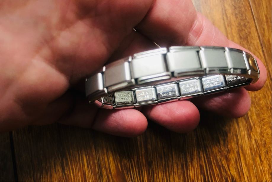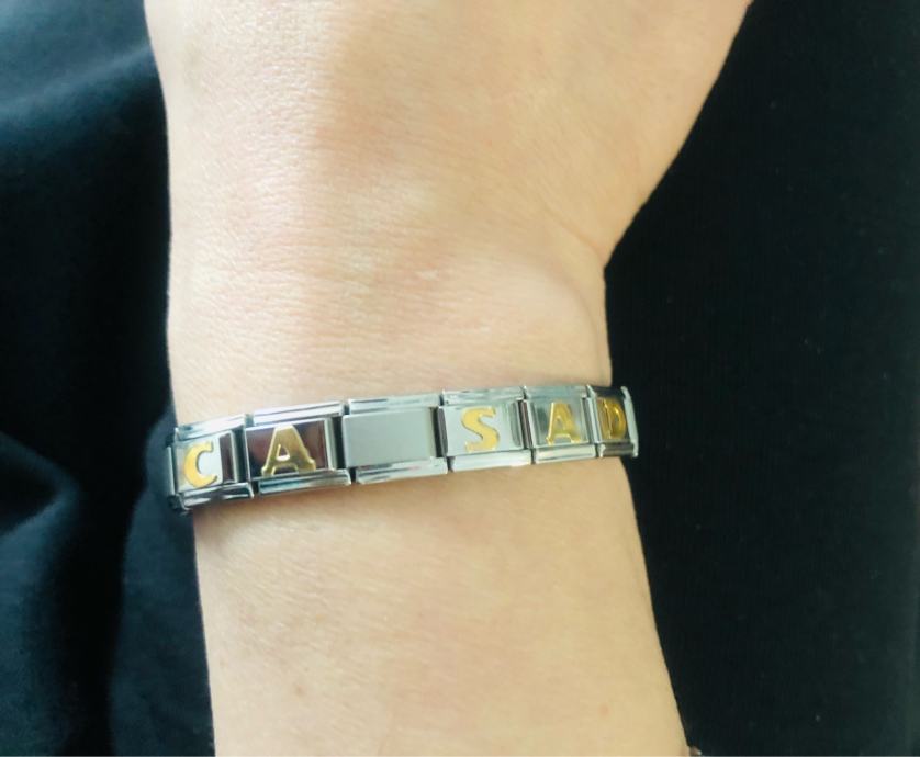 Prodajem Zoppini narukvicu od nehrđajućeg čelika s natpisom CA SAD i simbolom ležaljke na plaži.