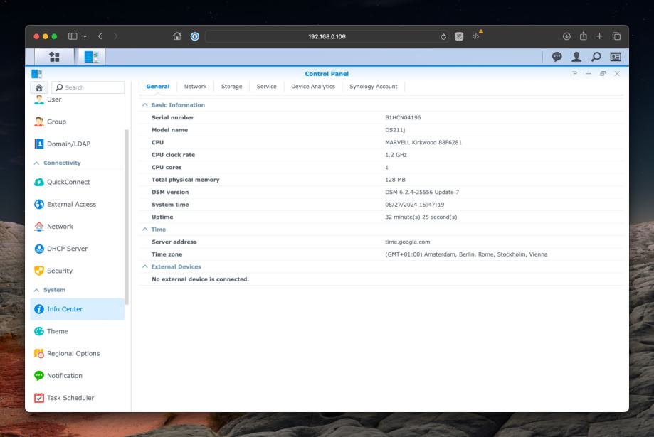 Prodajem Synology DiskStation DS211j, kompaktan i energetski učinkovit NAS uređaj, idealan za kućne korisnike i male urede. Ovaj uređaj omogućuje jednostavno upravljanje datotekama, backup, dijeljenje sadržaja i sigurnosno pohranjivanje podataka, kao i streaming multimedijalnih sadržaja. Dolazi s dva 2TB Western Digital Green diska na kojima se podaci snimaju paralelno (RAID 1), što osigurava očuvanje podataka čak i u slučaju kvara jednog diska.