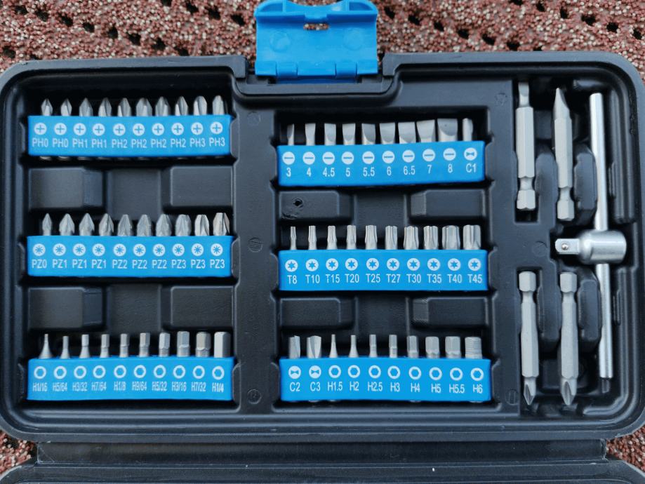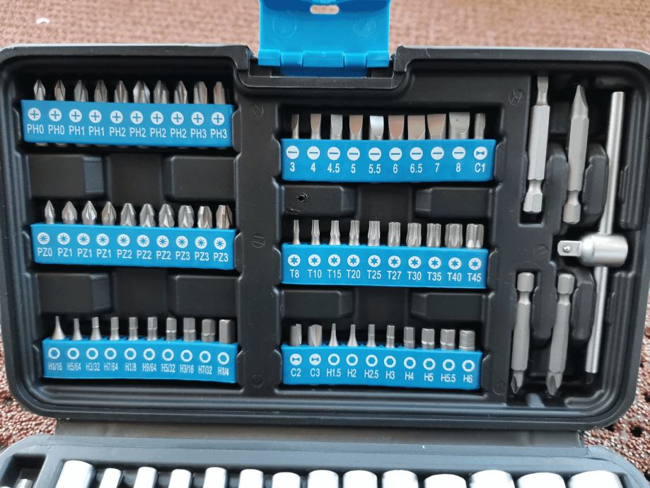 Ovaj set alata od 130 dijelova uključuje sveobuhvatan asortiman bitova uključujući bit-odvijač, 1/4" čegrtaljku sa 72 zuba, produžetak, T-kliznu ručku i 13 odgovarajućih umetaka za nasadni ključ. Također uključuje praktični kukasti odvijač (Y- bit), kao i 4 dugačka bita. Sve je sigurno pohranjeno u praktičnoj kutiji za pohranu.