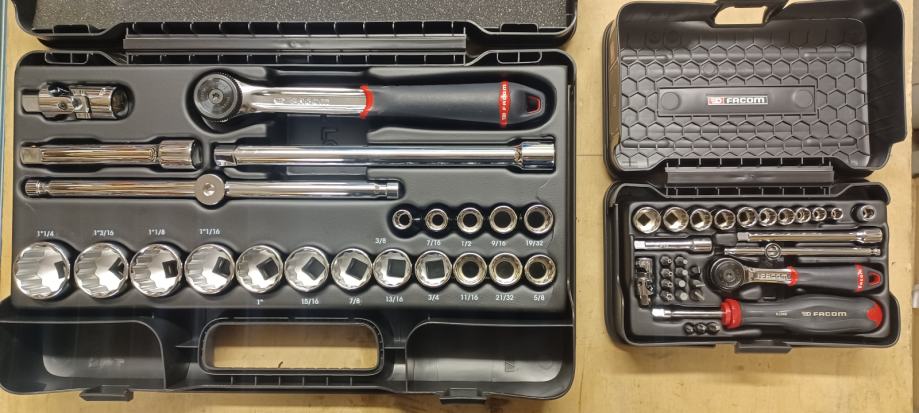 Prodajem dvije Facom garniture nasadnih ključeva, set 1/4" i set 1/2".