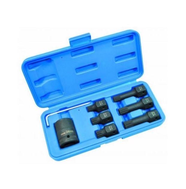 Novi set alata u kutiji. Kvalitetni udarni nastavci gedora . Specijalni xzn profil komplet. Cijeli set je novi i nekorišten u koferu. Koristi se za lakšu demontažu i montažu sa vijaka s posebnim profilom.
