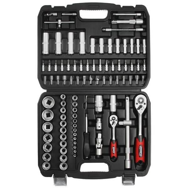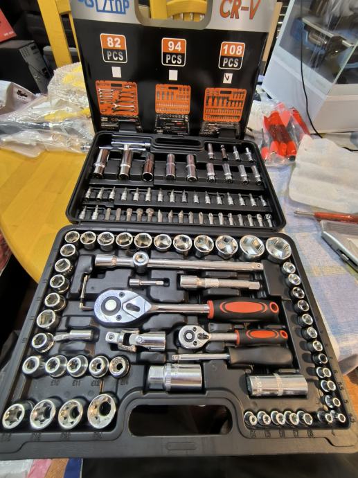nasadni ključevi u raznim veličinama i vrstama, a set uključuje i 2 čegrtaljke.