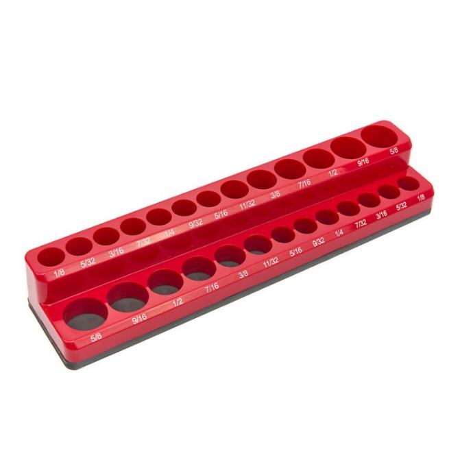 magnetna baza za sigurno pričvršćivanjekompaktna veličina za praktično skladištenje u kutijama za alat ili ladicamaovaj crveni držač nudi prostor za širok raspon nasadnih ključeva, od 1/8 inča do 5/8 inčamagnetska baza drži vaš alat čvrsto na mjestu, dok ga kompaktna veličina olakšava pohranjivanje u kutiju za alat ili ladicuTehnički podaciveličine: 1/8, 5/32, 3/16, 7/32, 1/4, 9/32, 5/16, 11/32, 3/8, 7/16, 1/2, 9/16 & 5/8 indimenzije proizvoda: 234x54x36mmtežina: 287g]]>
